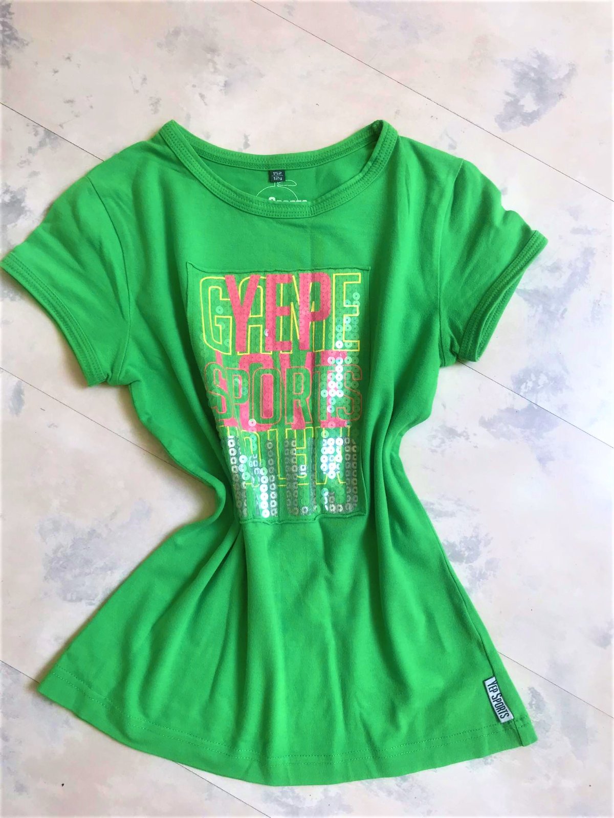kvalitné tričko,málinko nosené, krásna pestrá letná farba,perfektné trblietavé letné aplikácie,výborný stav,bez poškodení,šírka = 38 x 2 cm, dlžka = 54 cm,obsahuje prímes elastanu,takže pekne drží formu