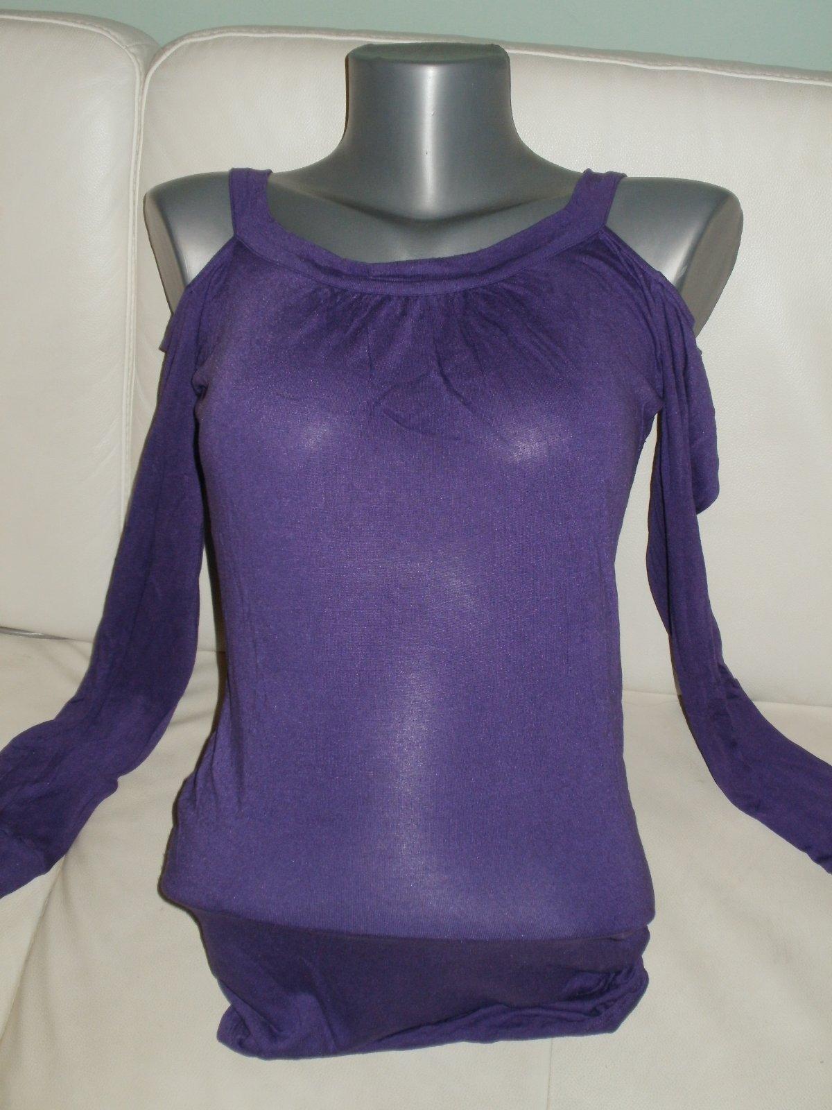 Spodok je riešený šikmým zostrihom, holé ramená a dlhý rukáv.