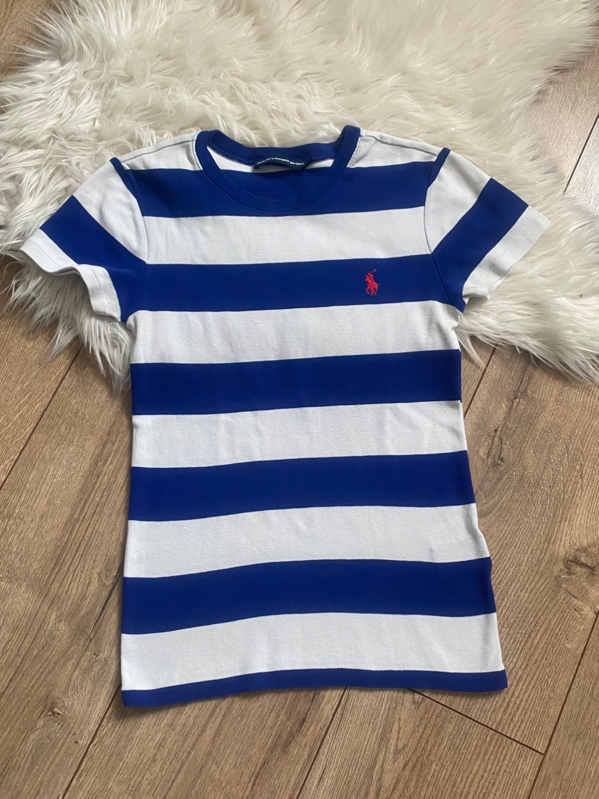 Ralph Lauren tricko s lodickovym výstrihom, s bledý lemovanim, velkost S, nosene mali Jo, super stav.