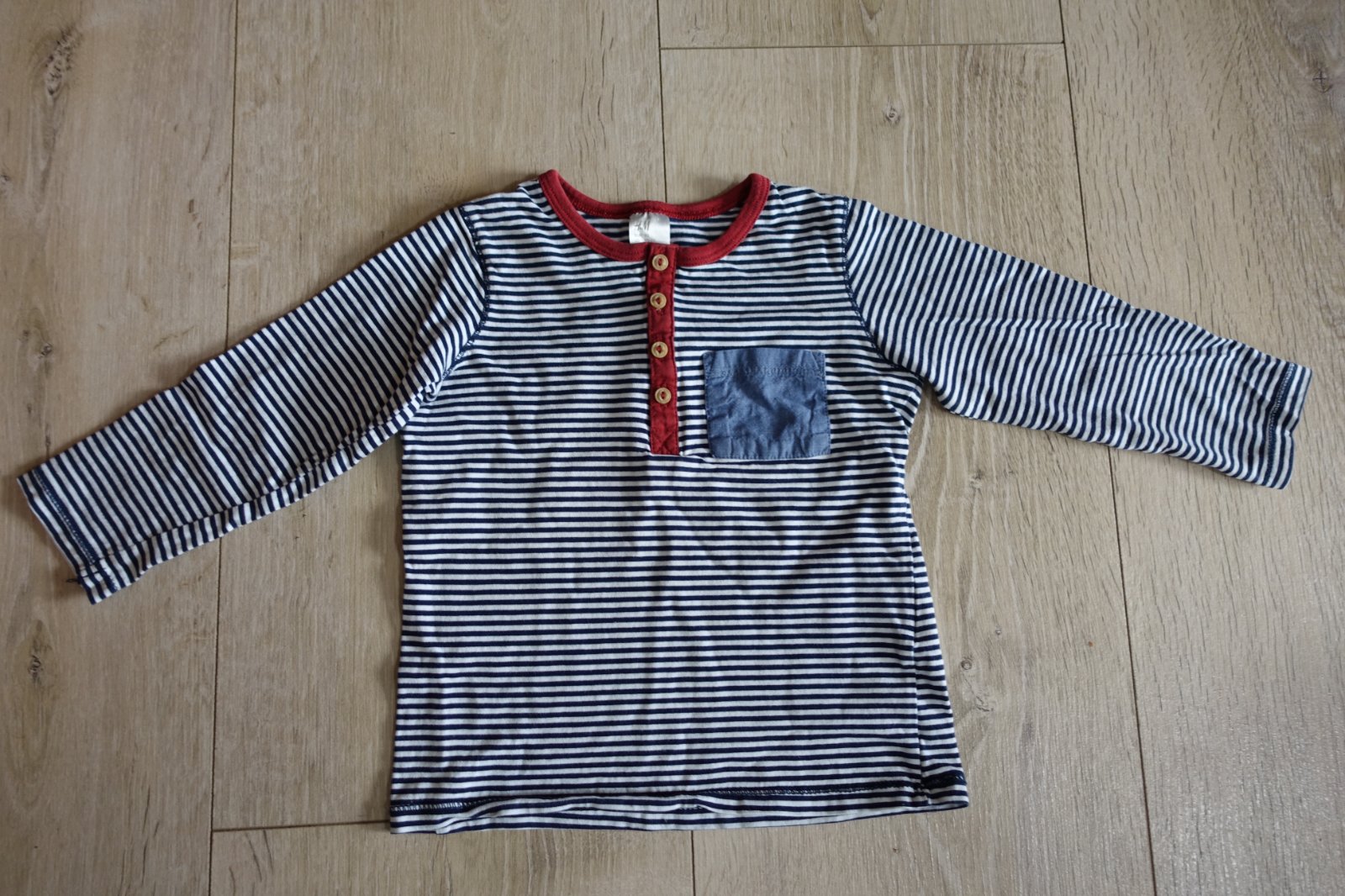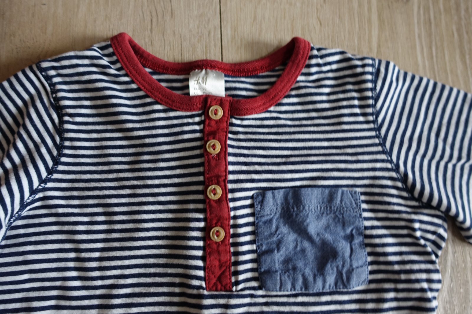 Predám krásne, jemné bavlnené tričenko s vreckom vo veľkosti 92. Gombíky sa dajú rozopnúť. Mali sme ho len pár krát, ale je vo veľmi peknom stave. Žiadne diery, ani fľaky, ani žmolky. Dĺžka 35 cm, šírka 29 cm. (V06)