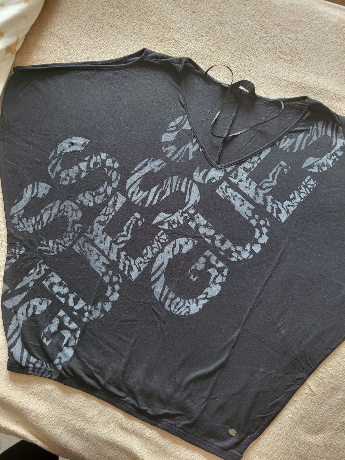 Kupovaná tu na MK, je menšia uni, skôr M alebo L ko. Strih je super, mne je malá. Tunika je nenosená