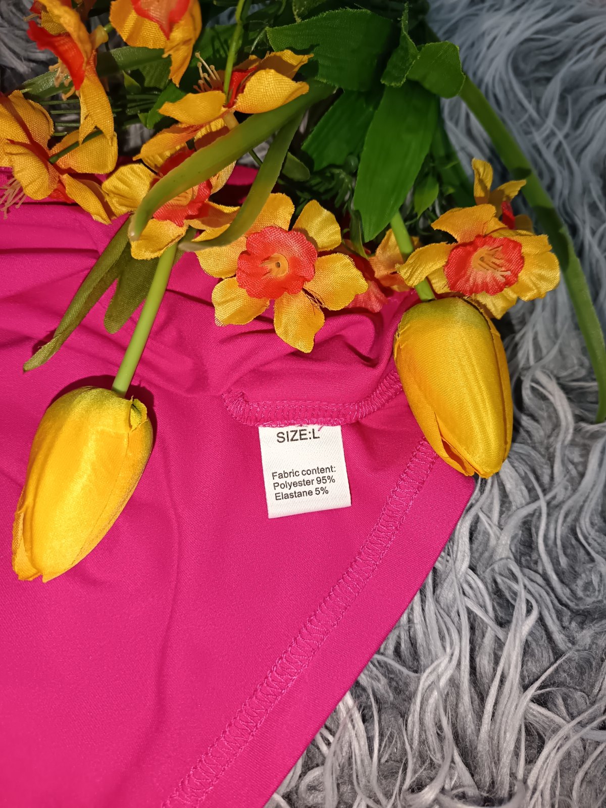 Nosené bez poškodenia. Len nápis dolu sa odlepuje, ale drží. Všitá podprsenka, so širokou gumou po obvode. Veľkosť písaná na L, ale kľudne aj na M. Foto je na výške postavy 180cm s konfekciou M-L