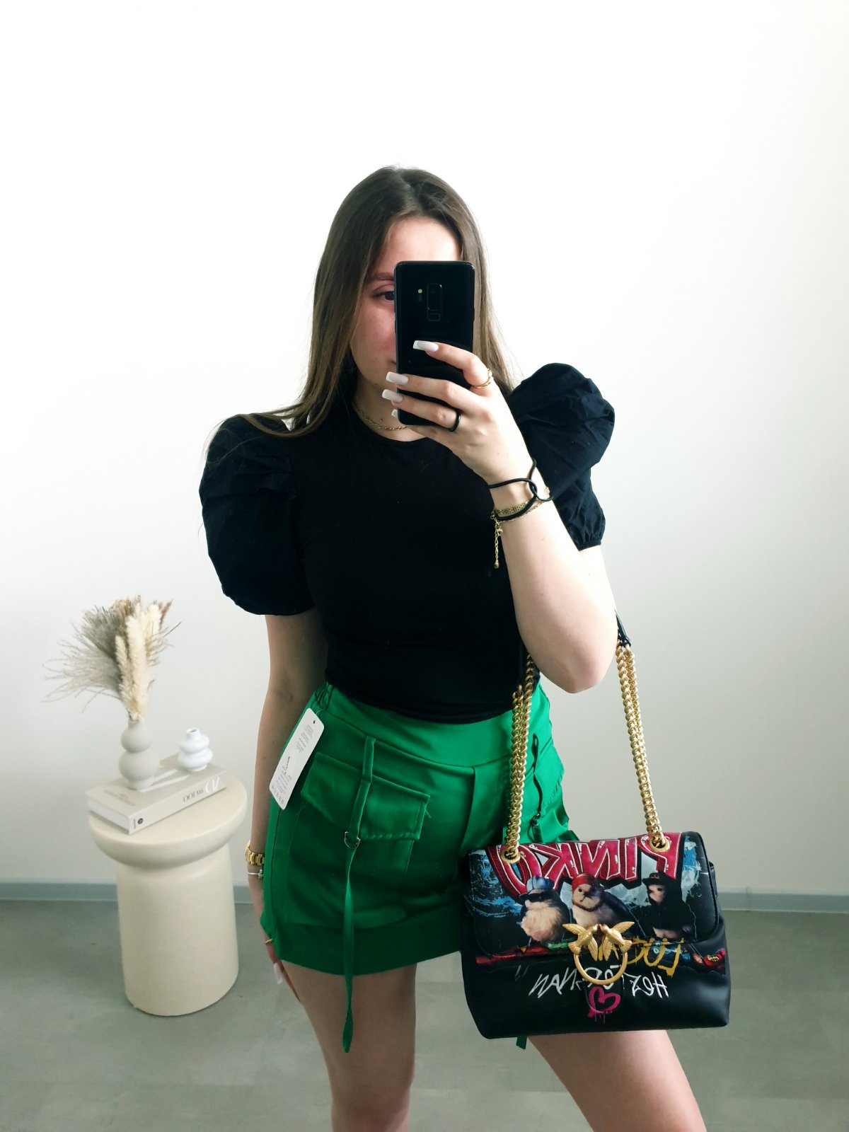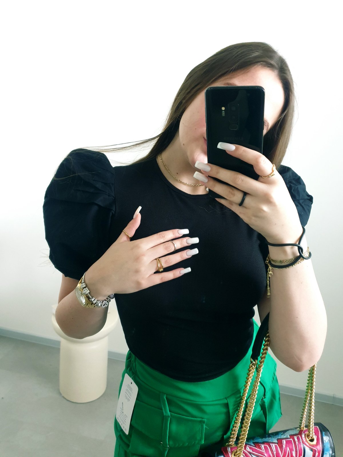 Čierny top s balónovými rukávmi S/M