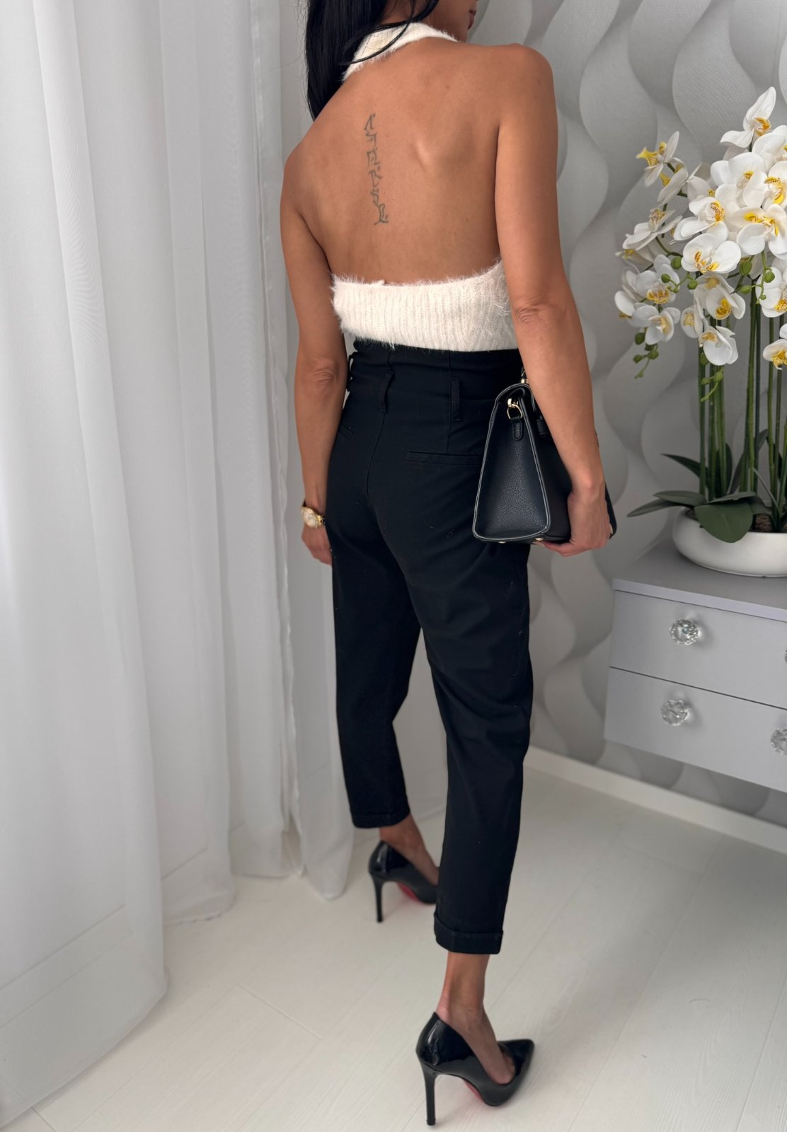Biely chlpatý jemnučký top okolo krku.