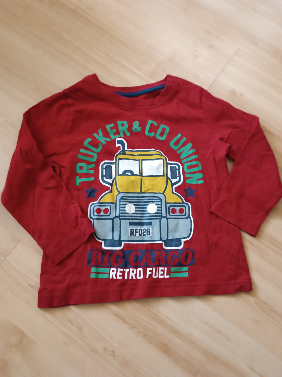 Tričko s dlhým rukávom červenej farby. Na prednej strane aplikácia. Celková dĺžka trička je 43 cm, šírka 33 cm, dĺžk rukáva od švíku na pleci 36,5 cm. Výborný nosený stav!