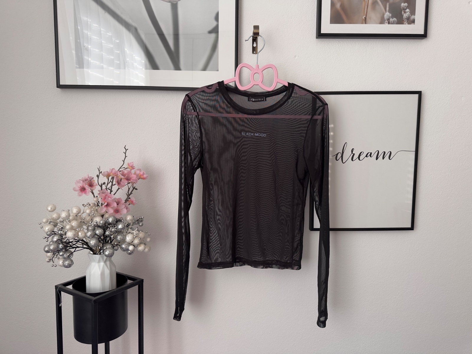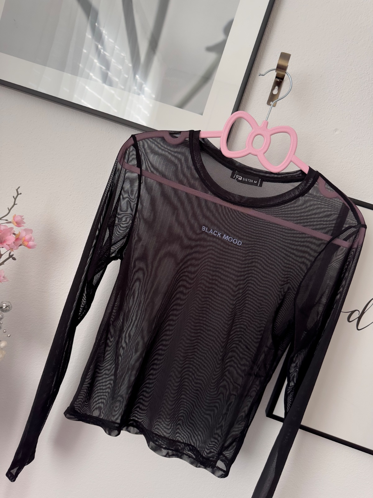 Čierny transparentný top s dlhým rukávom, top stav bez chyby.
