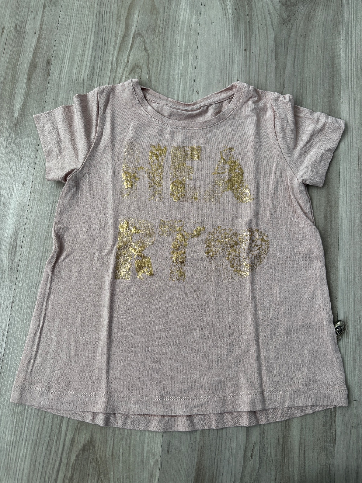Tricko s trblietkavym srdieckom vo velmi peknom nosenom stave. Velkost 110/116