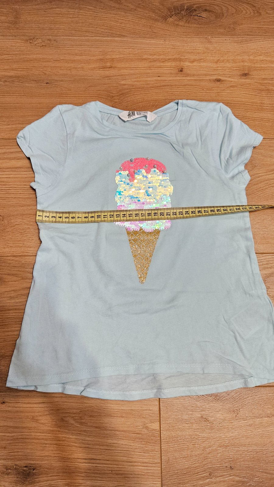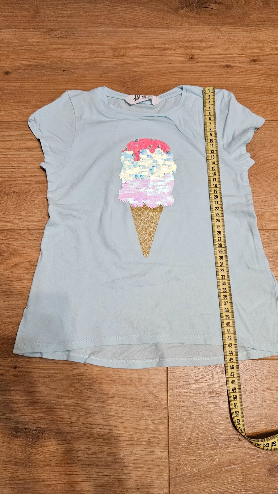 Tričko s interaktívnych motívom, zn. H&M, veľkosť 122-128. Kupované nové, vo veľmi dobrom stave. Rozmery a zloženie na fotkách.