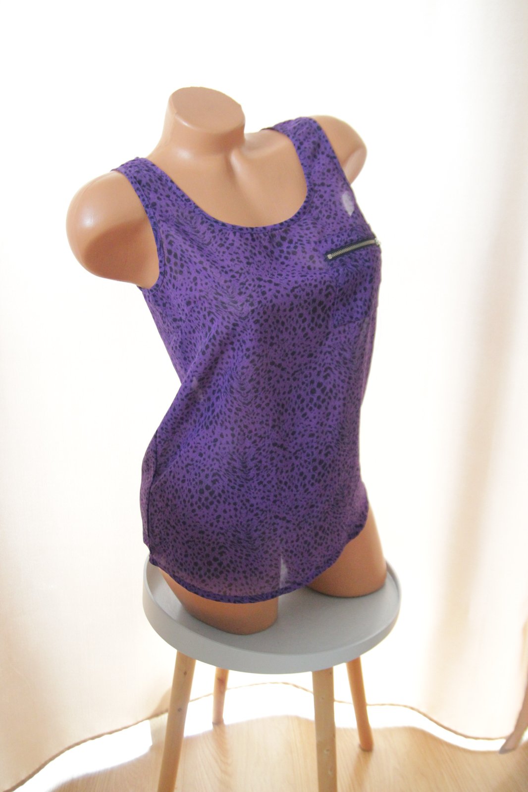 Fialovo čierny leo top, veľkosť XS. Má zatiahnutú niť - posledná foto.