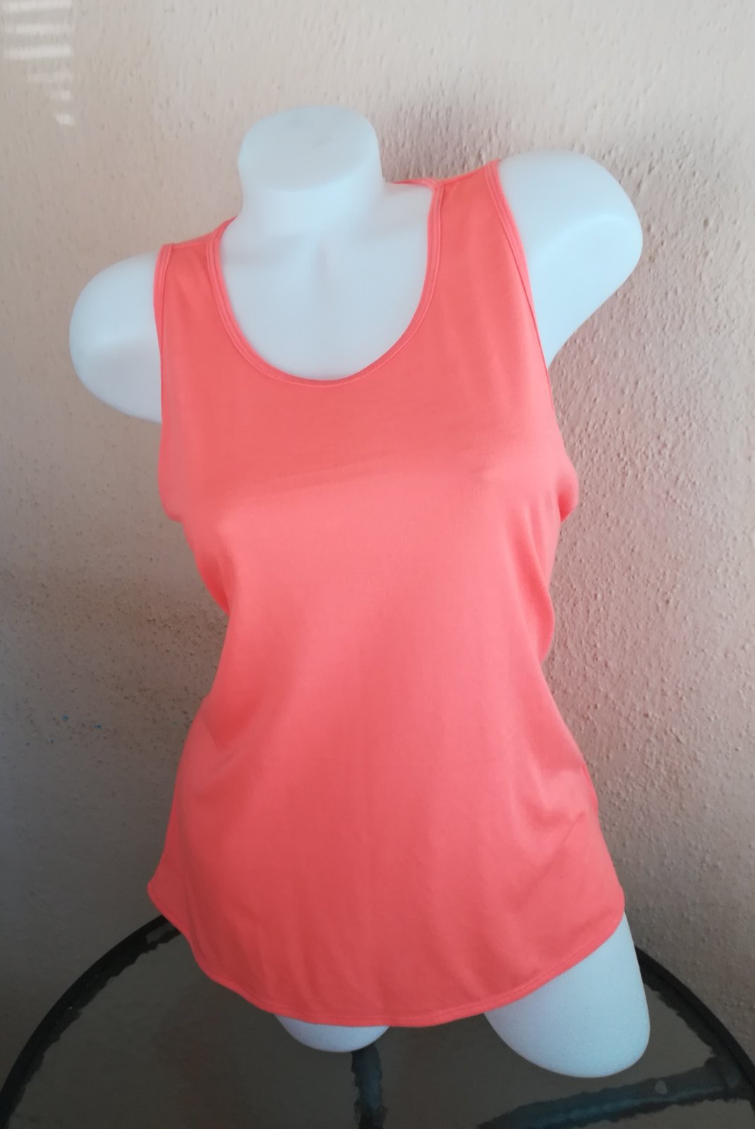 Veľmi málo nosené, vo výbornom stave, dámske tielko/top/tričko s tenkými ramienkami, v krásnej lososovej farbe z veľmi príjemného elastického materiálu.