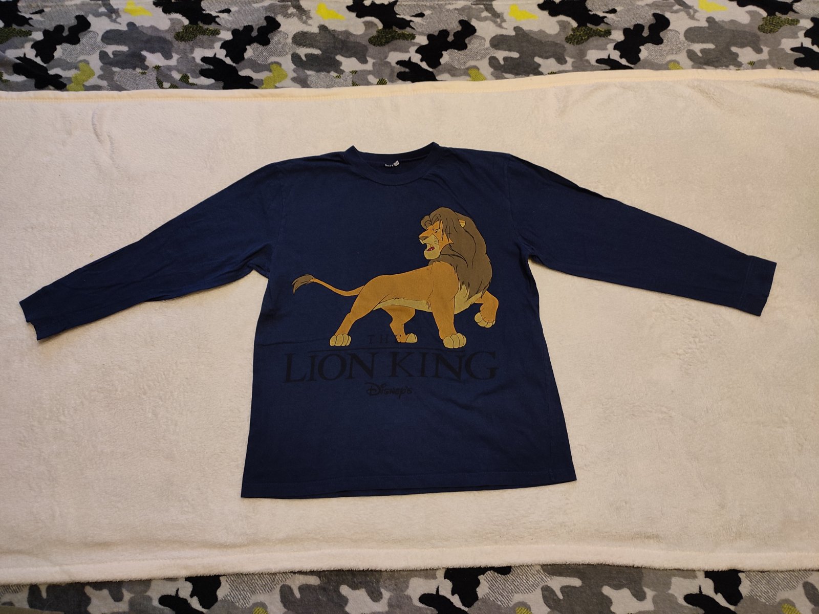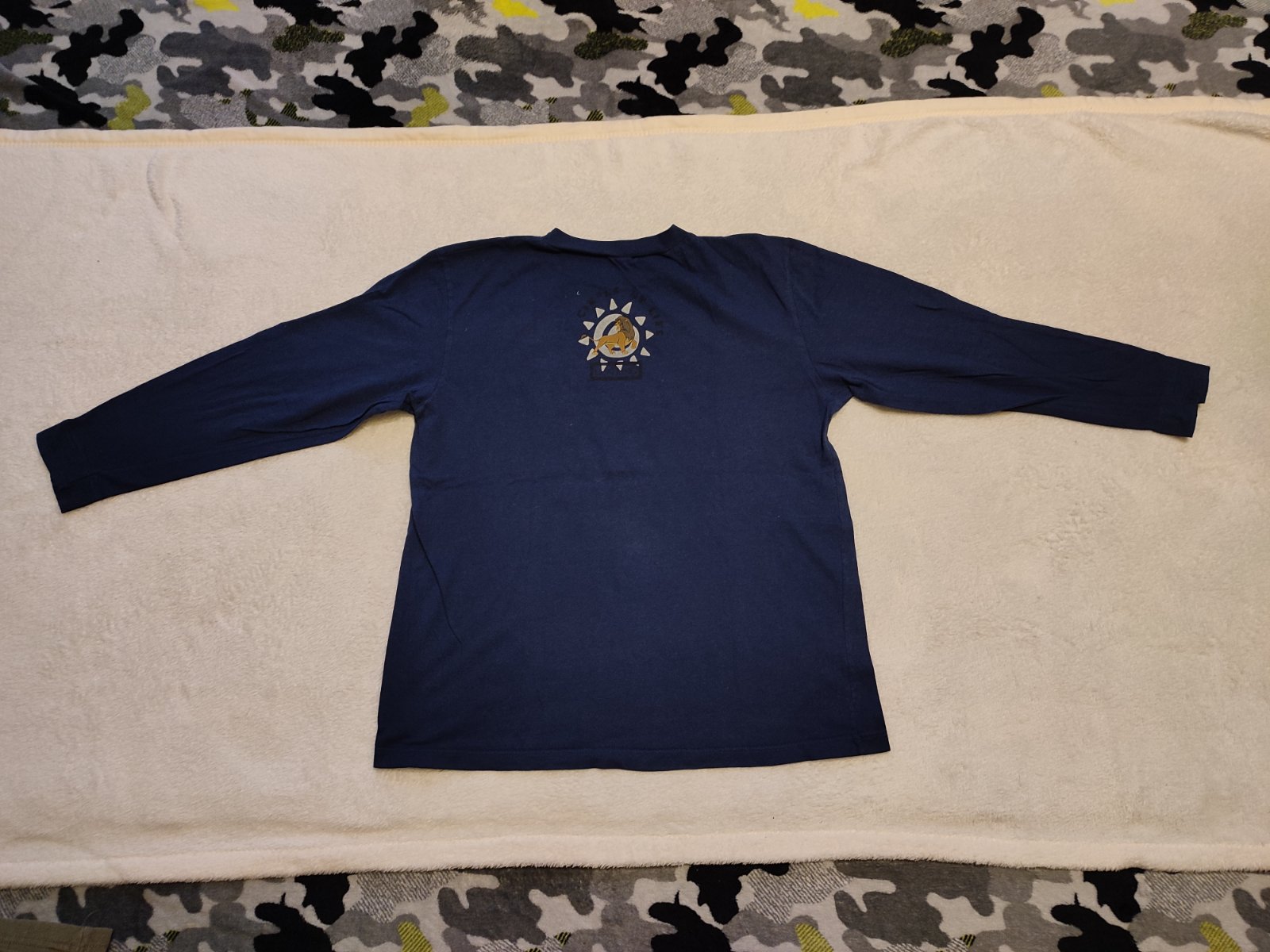 Zachovalé nosené tričko s levom.Môže byť aj ako pyžamko.Veľkosť odstrihnutá.Dĺ.53cm,š.41cm,rukáv 43cm+10cm plece .Na jednom rukáve dole predraté dierky.Nevidno pri nosení.Darujem k nákupu.