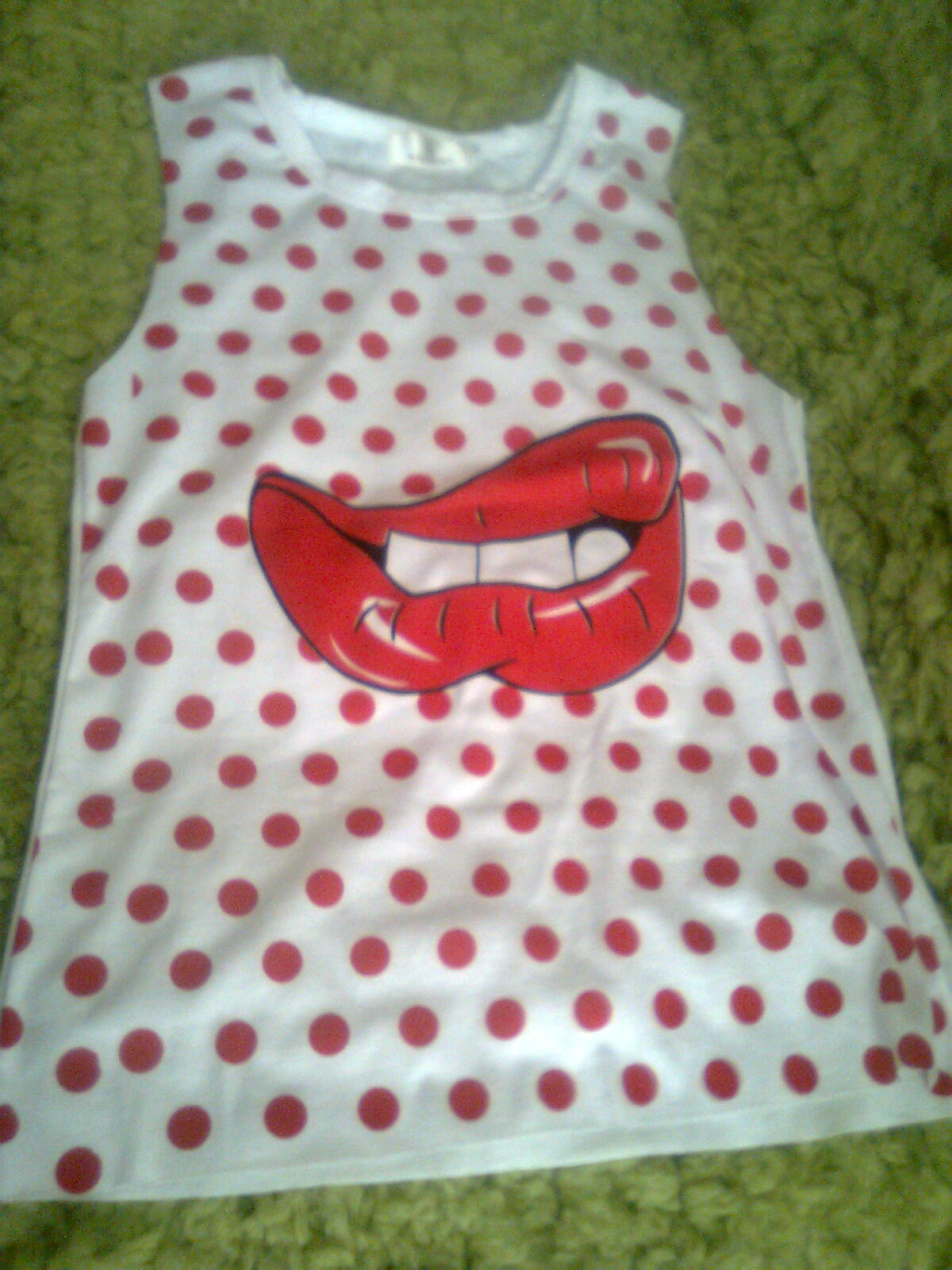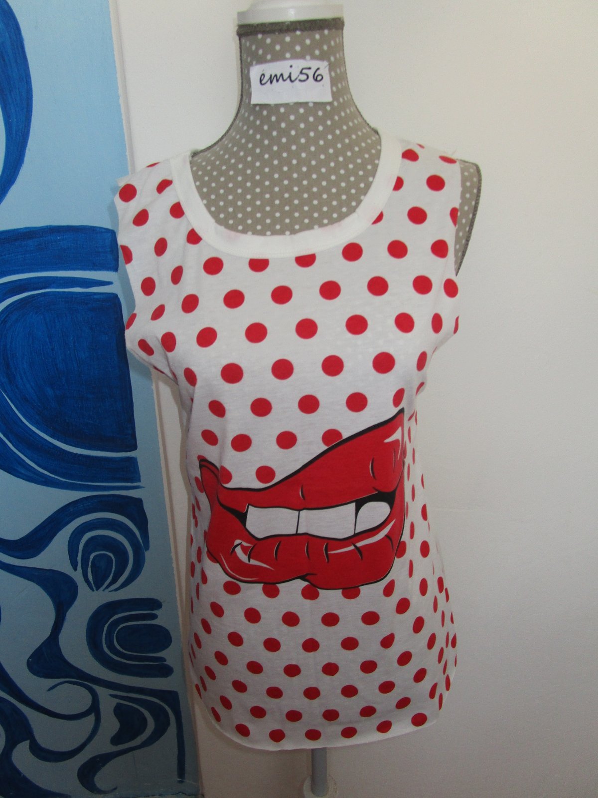 Tričko Baluoke je bielej farby s červenými bodkami + motívom. Rovný dolný okraj. Bez rukávov, super kvalita a veľmi ľahká údržba. Príjemné na nosenie. Chrbát jednofarebný. Možno prať v práčke. Aktuálny a pohodlný strih, zdôrazňujúci vašu siluetu.