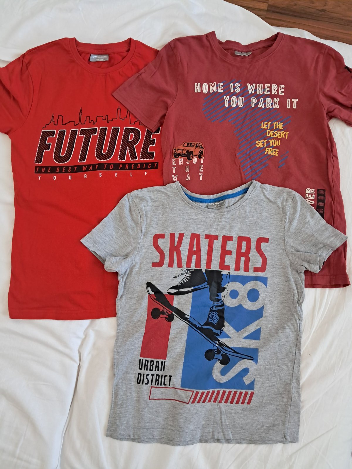 Velmi dobry stav, cervene Future len oprate. Velkost 146-152, cervene Future je dlhsie, vacsia velkost, ale je pri krku uzsie, preto skor velkost 146- 152 tiez. Kus 2 eura.