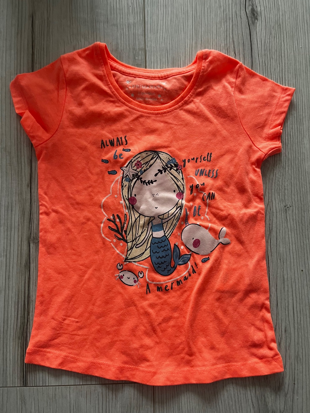 Predám kratkorukavove lososové tričko s obrazkom morskej vily, značka Primark, veľkosť: 98