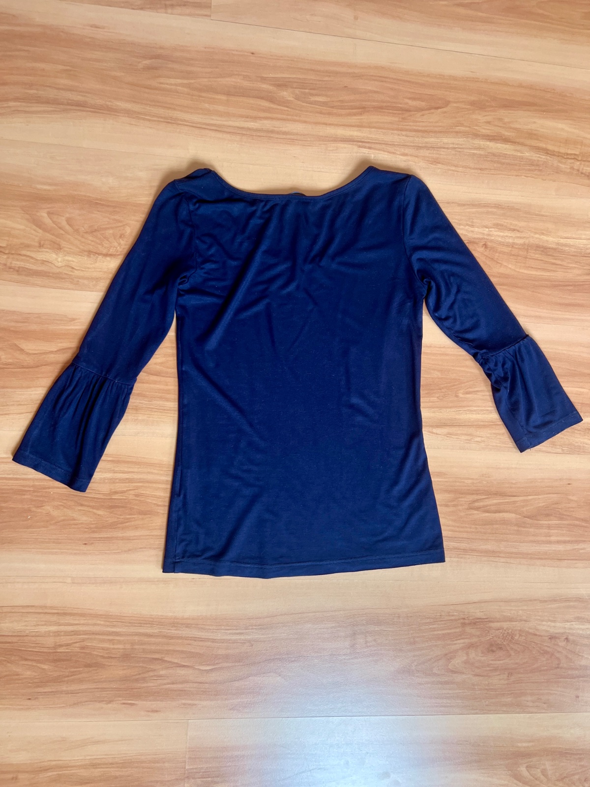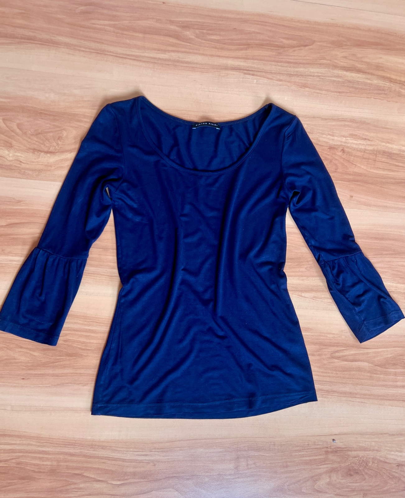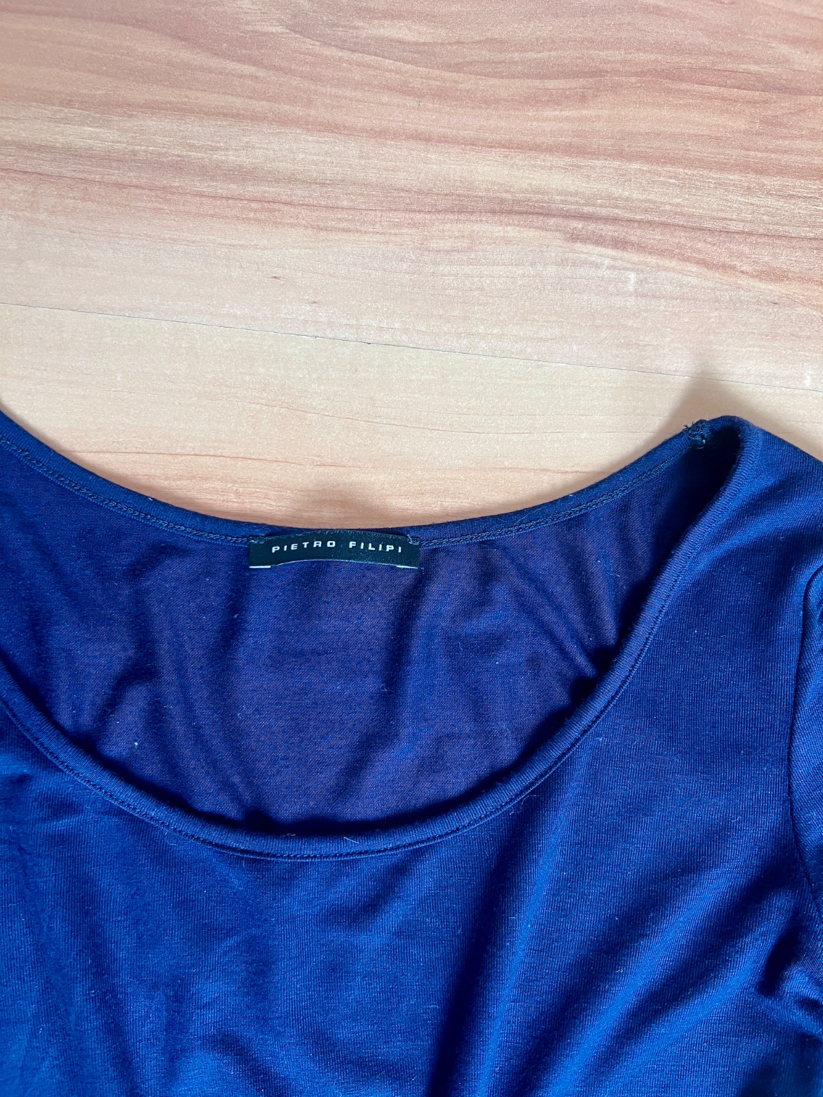 Modré tričko značky Pietro Filipi. Kvalitný jemný a elastický materiál. Jednoduchý strih len s jemne nariasenými rukávmi. Veľkosť XS.