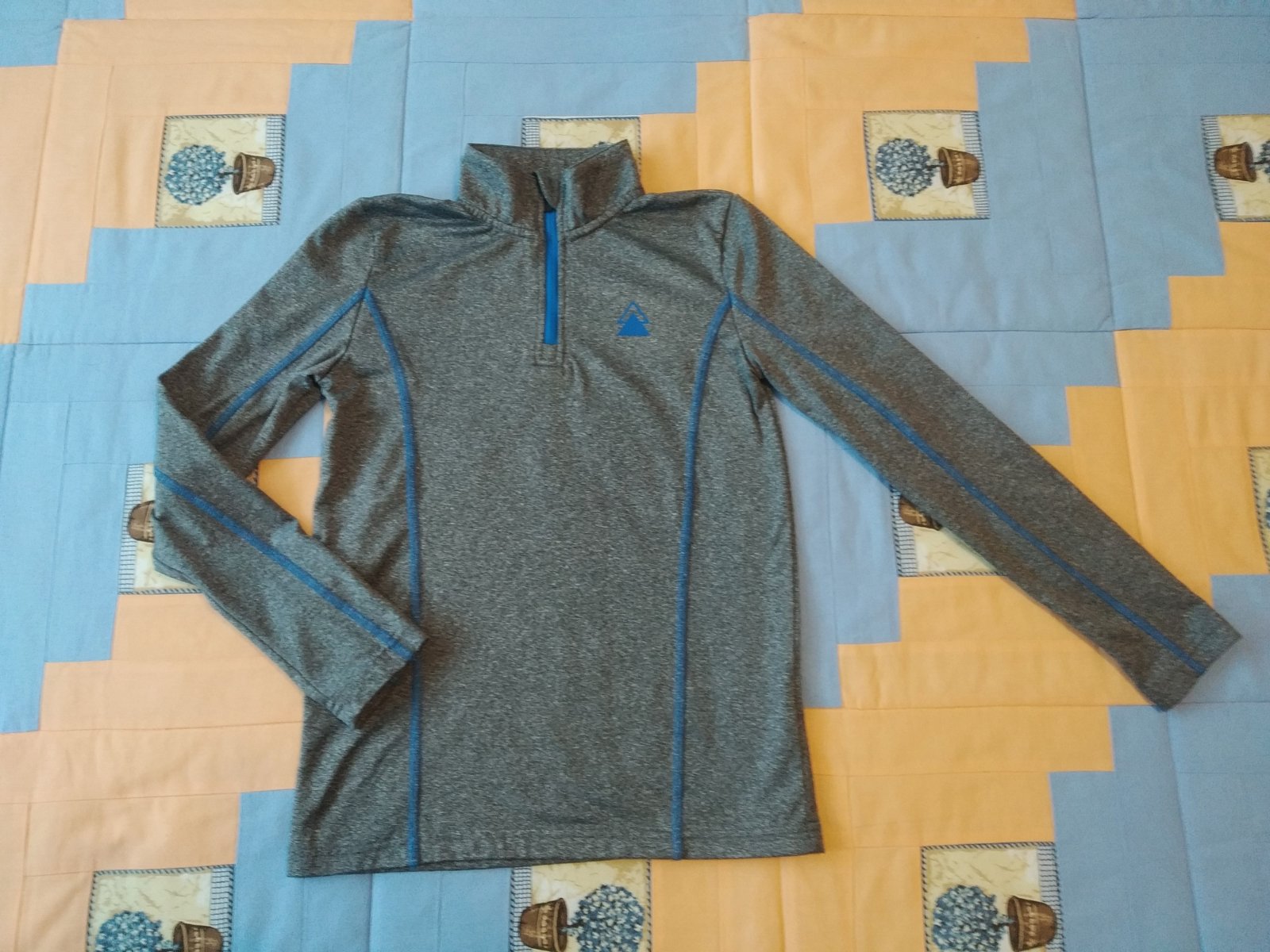 Termo tričko so stoja činom, rozopínaním na zips pri krku. Veľkosť 134/140. Dobrý nosený stav.