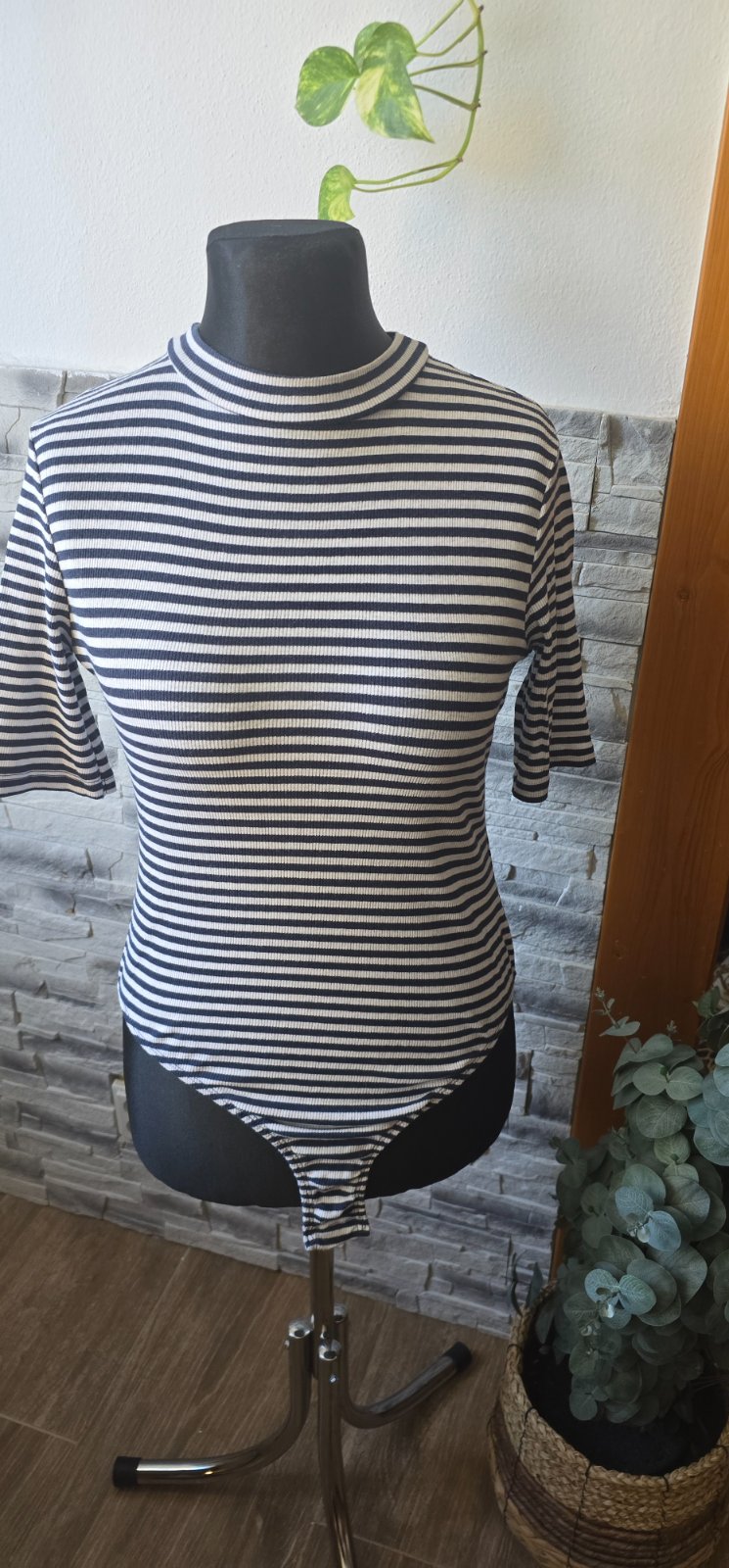 Predám pásikavý svetrík s krátkym rukávom. Svetrík je v odtieňoch bielej, čiernej a svetlo-modrej farby. Má zaujímavé riešenie v oblasti dekoltu. Svetrík bol nosený len málo, je bez známok poškoden...