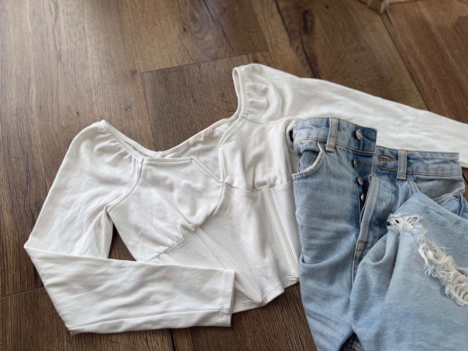 Ponúkam na predaj biele tričko s dlhým rukávom a s ozdobnou brošňou. Cena 6€ + poštovné. Veľkosť UNI Rozmery Rozmery: + - 2 cm Predná dĺžka: 52 cm Dĺžka chrbta: 52 cm Dĺžka rukávu: 45 cm Busta: do ...