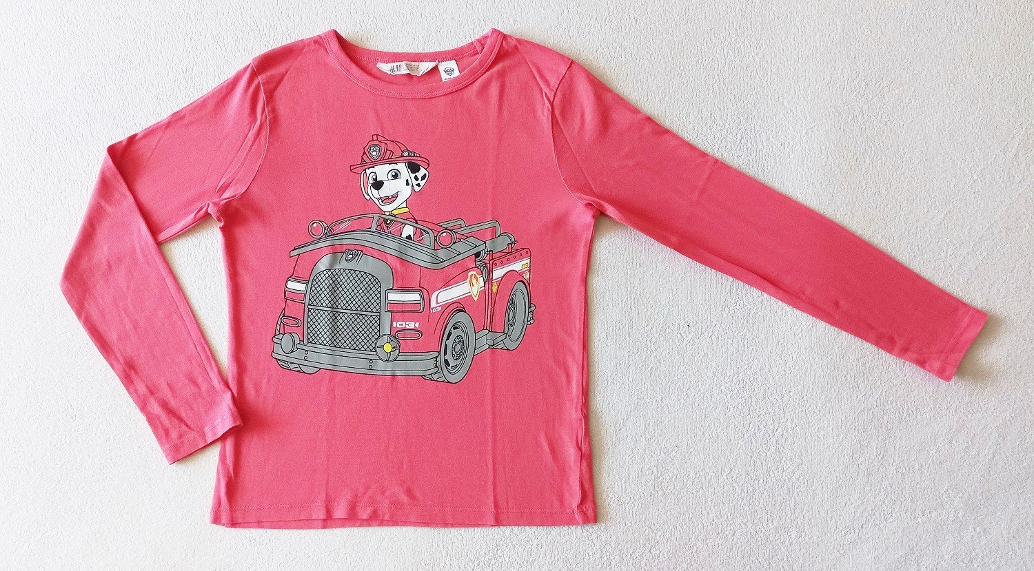 Krásne tričko koralovej farby s obrázkom Paw Patrol, značka H&M, veľkosť 134/140. Nosené, vidieť nosenie, nepoškodené, top stav. Rozmery sú na fotkách, 100% bavlna. Máme viacero detských vecí, môžete si zostaviť vlastný balíček. Pri kúpe viac vecí, sa rada dohodnem na zľave.