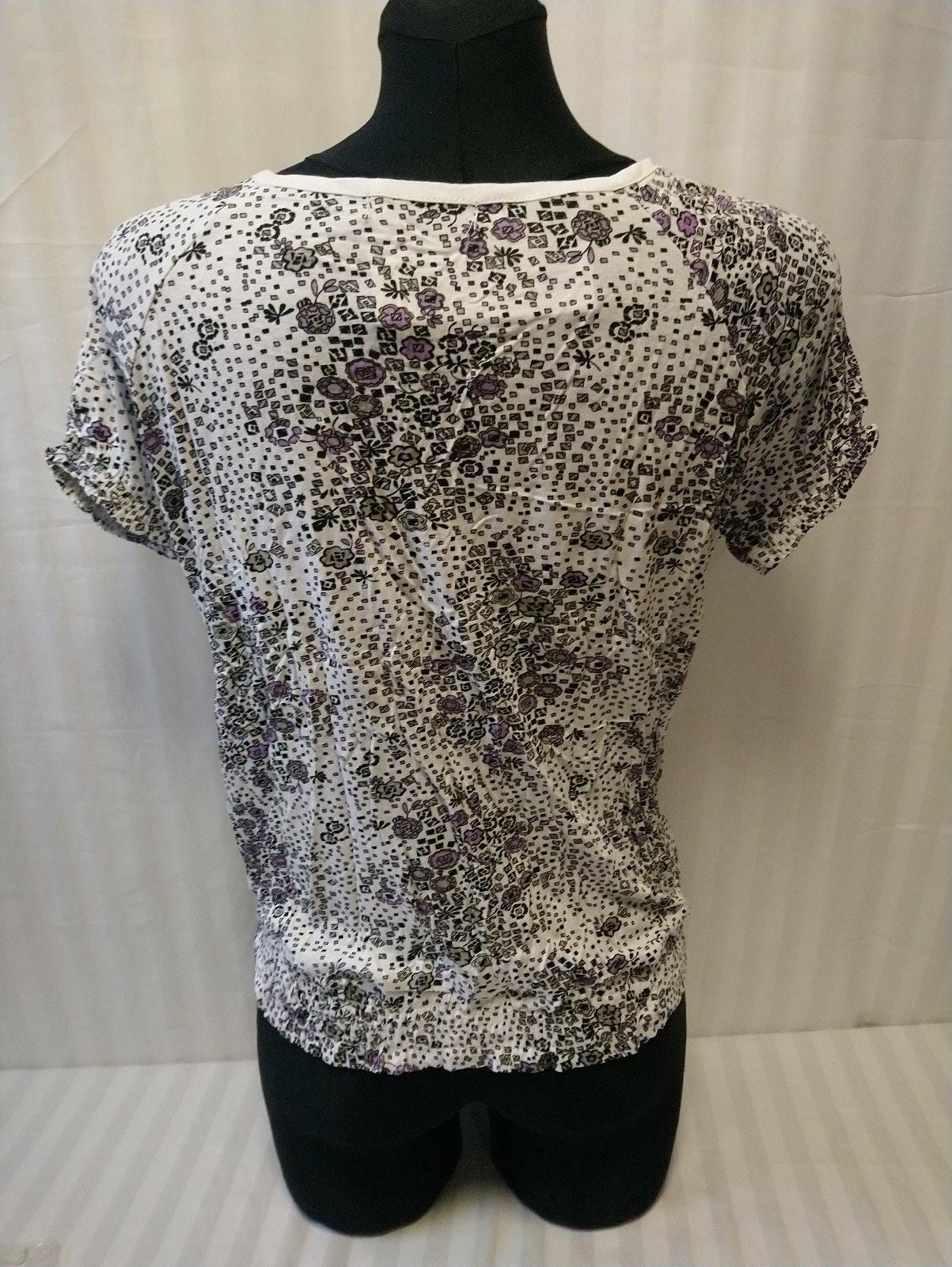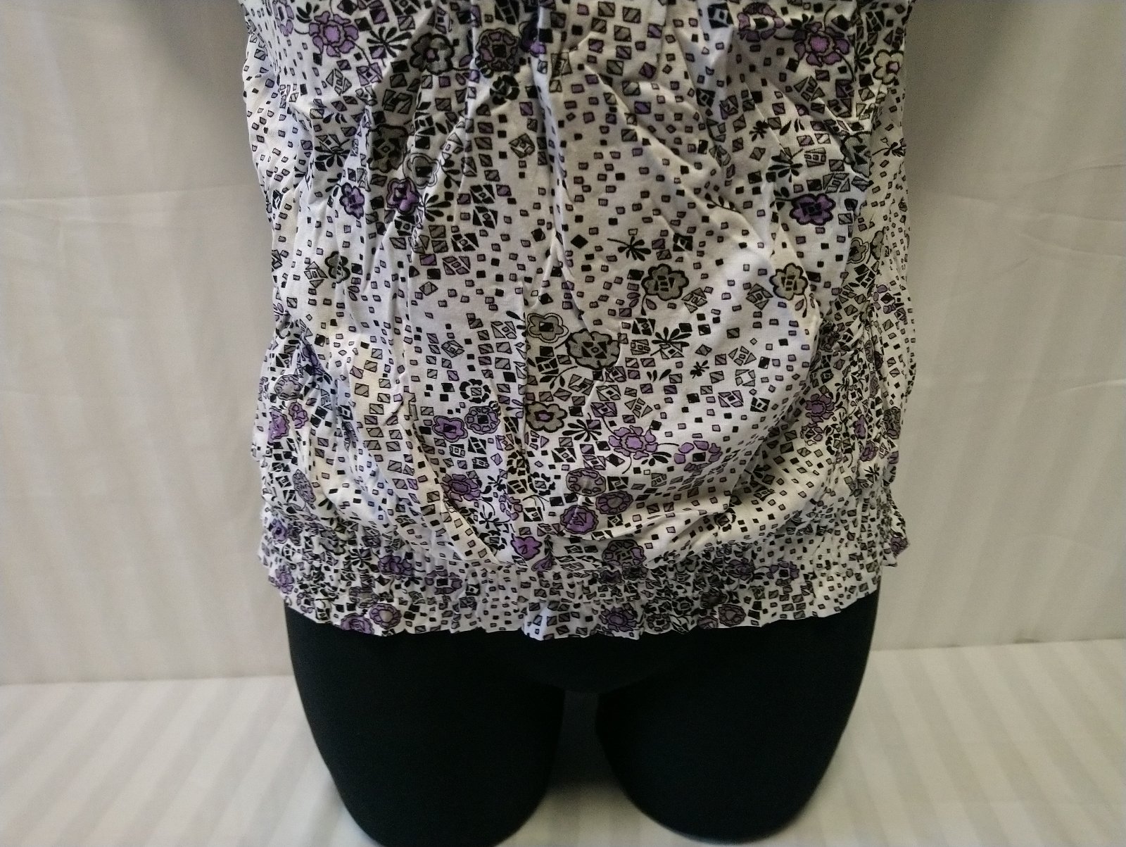 nový dámsky elastický biely top s farebným kvetinovým vzorom, dole zakončený do gumy,