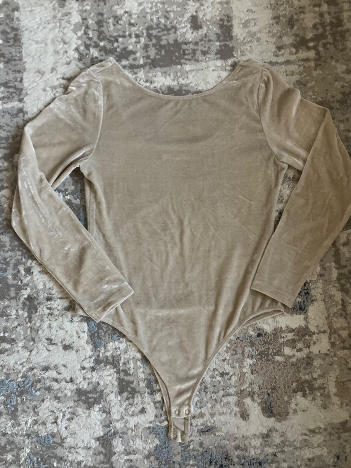 Oblečené raz, veľkosť písaná L, no zaradila som ku M, pretože sedí na M. Zamatové s výstrihom na chrbte, farba champagne.