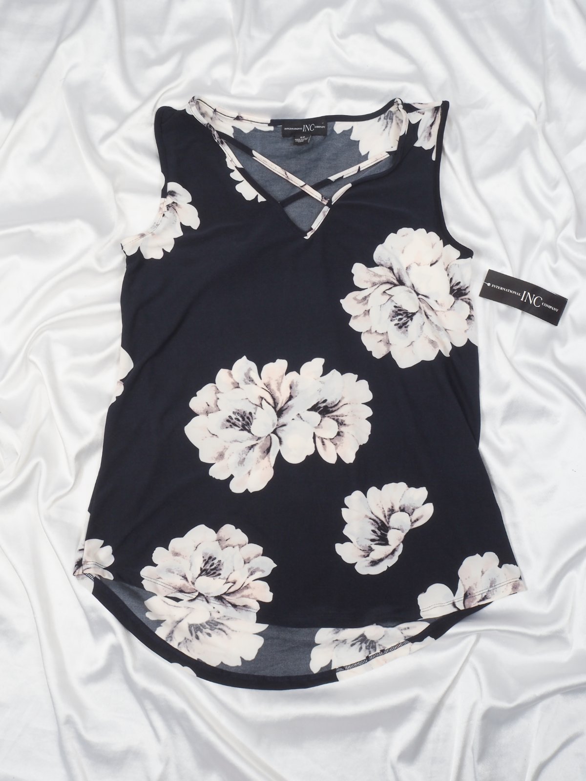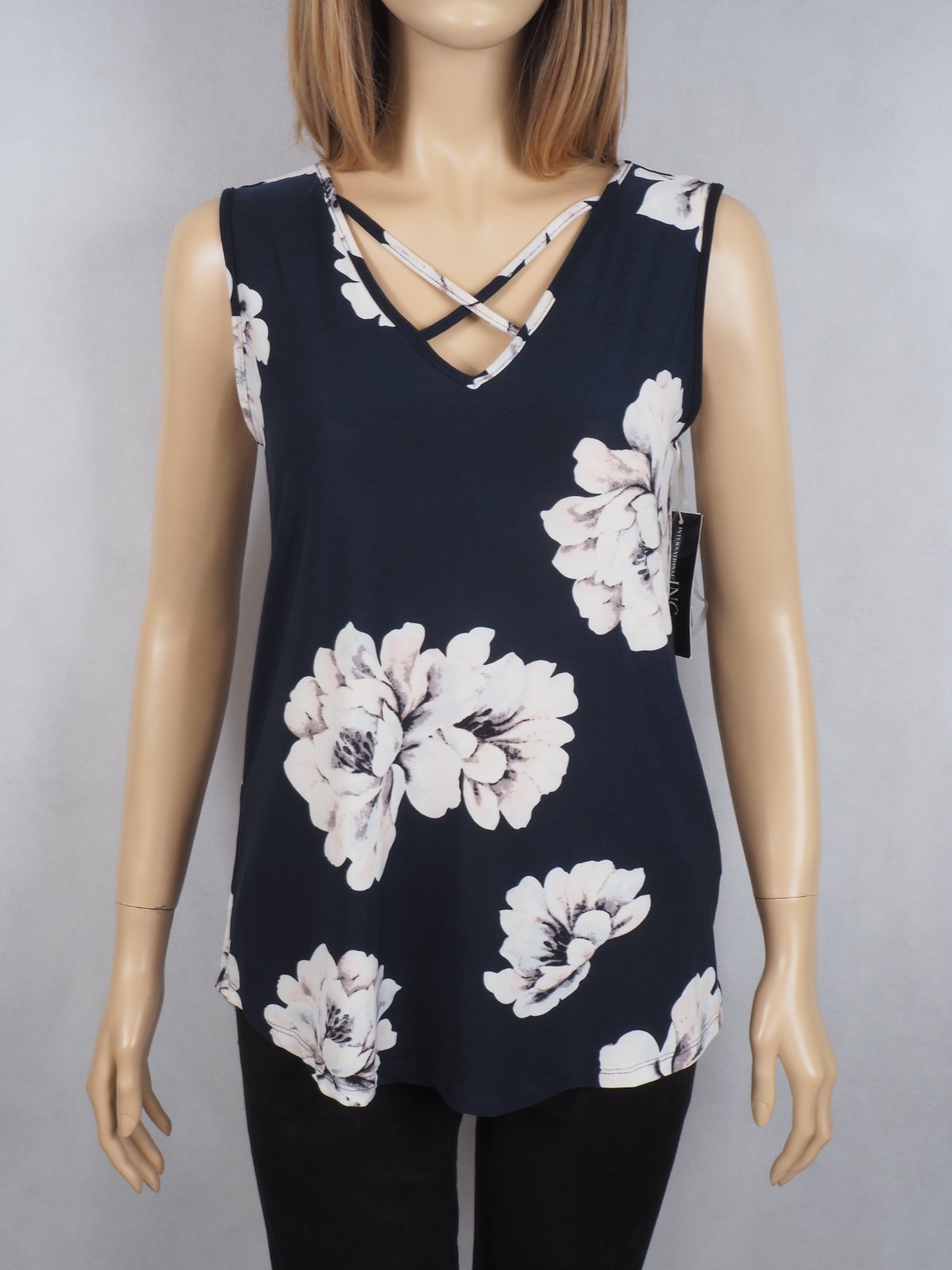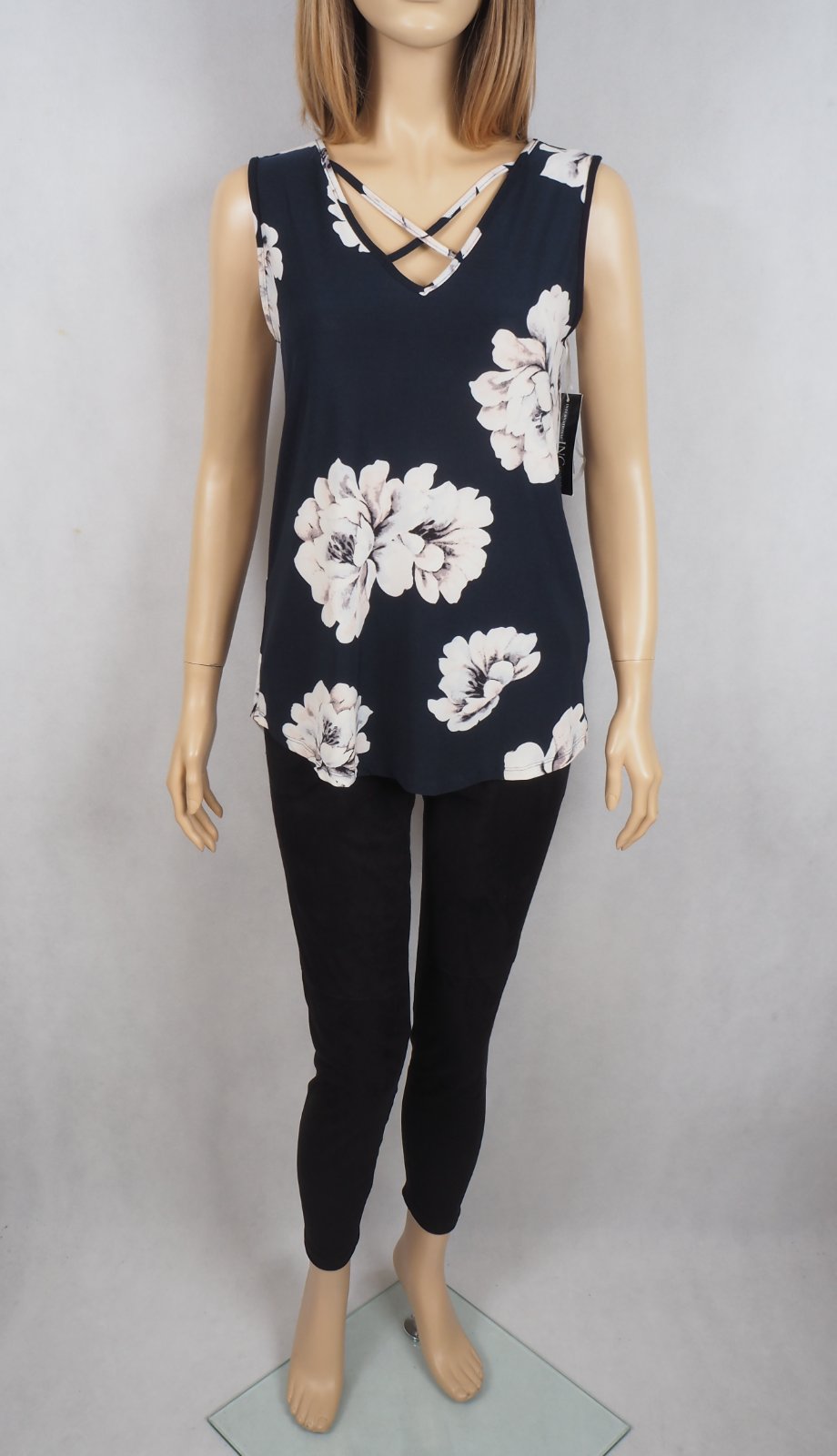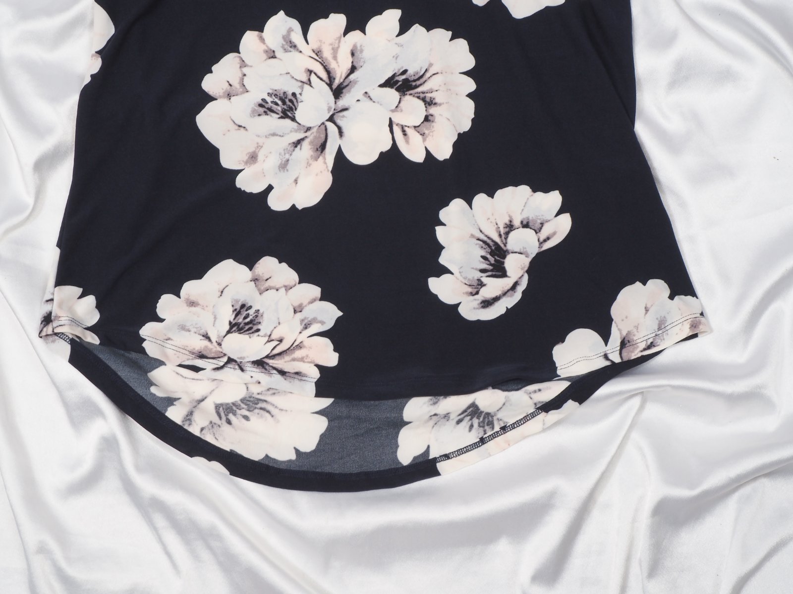 Kvalitný úpletový top tmavomodrej farby, so vzorom, materiál 92% polyester, 8% elastan, super stav.