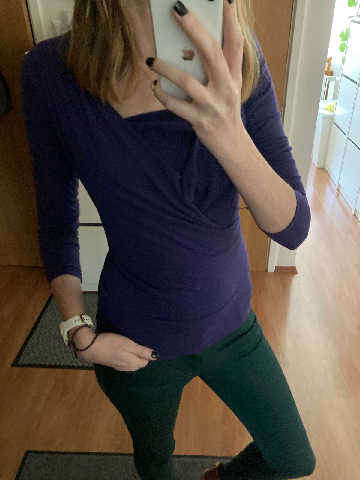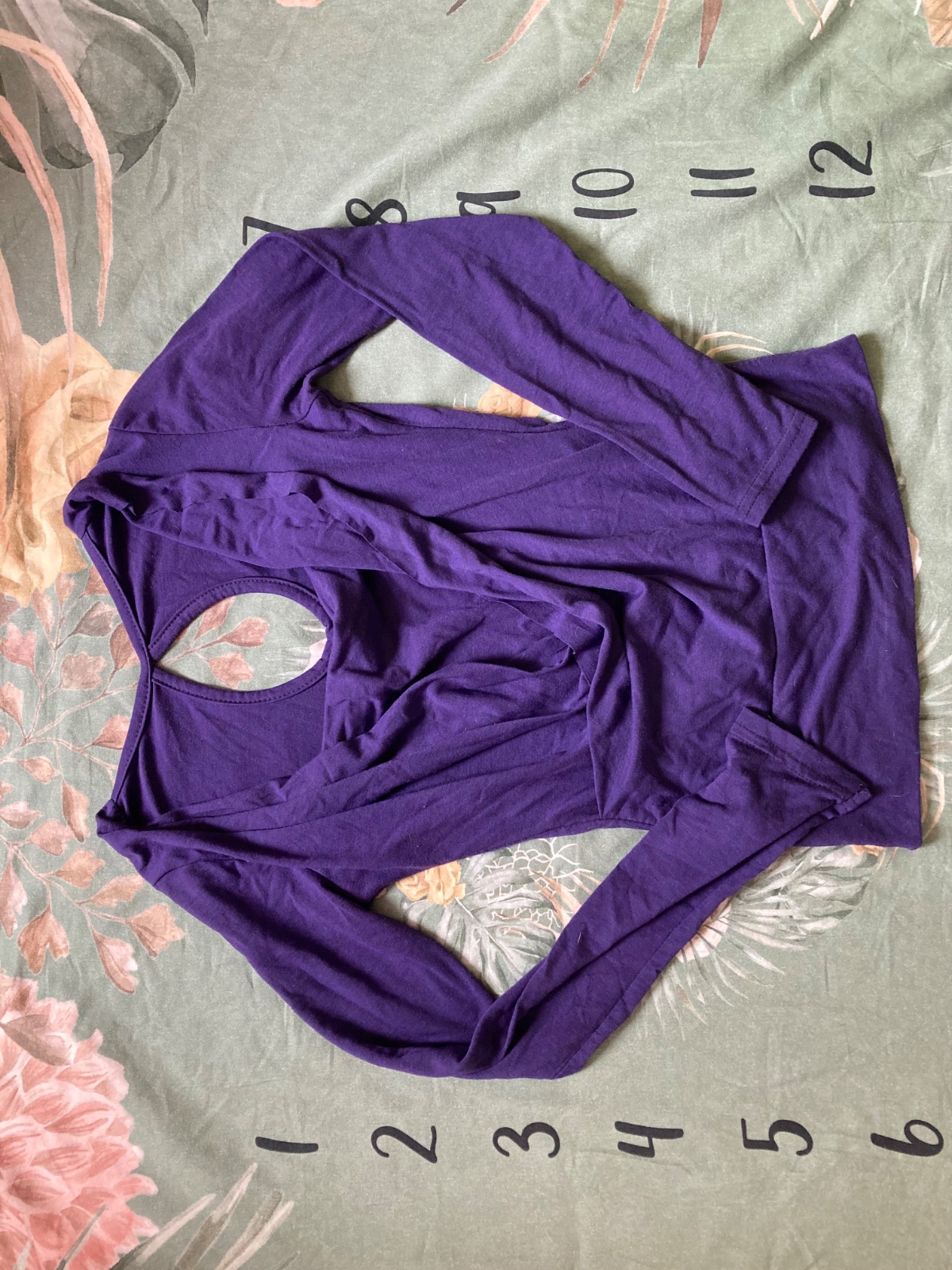 Fialovy top tricko XS/S s dlhym rukavom vpredu riaseny, elegantny pekne tvaruje postavu