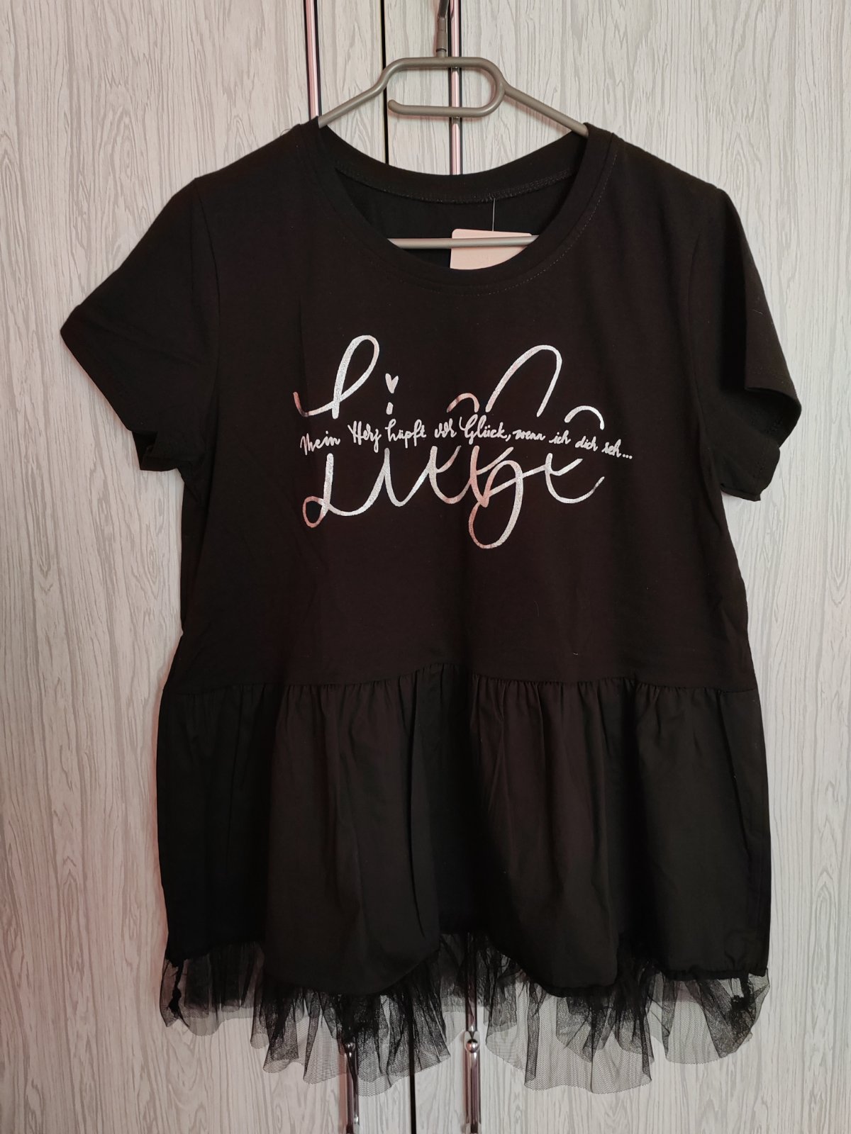 Tričko ako nové. Na rukávoch koralky taky detail pekný ,príjemný materiál obvod pod pazuchami 57x2 dĺžka chrbát 62cm