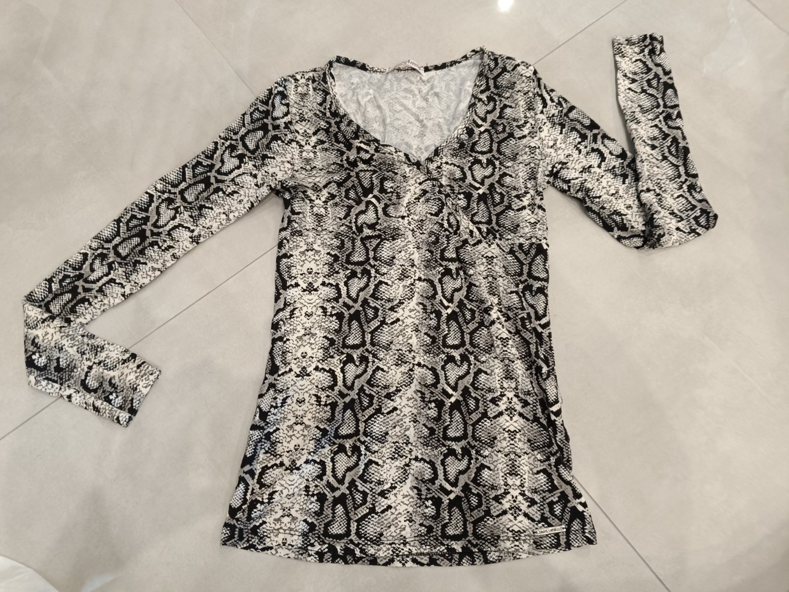 Pár krát oblečené, zachovalý stav bez poškodení. Čierne čipkové tričko s dlhým rukávom, priesvitné, vhodné ako vrchná vrstva na tielko. Veľkosť je písaná M, ale sedí skôr na S, keďže je dosť úzke.