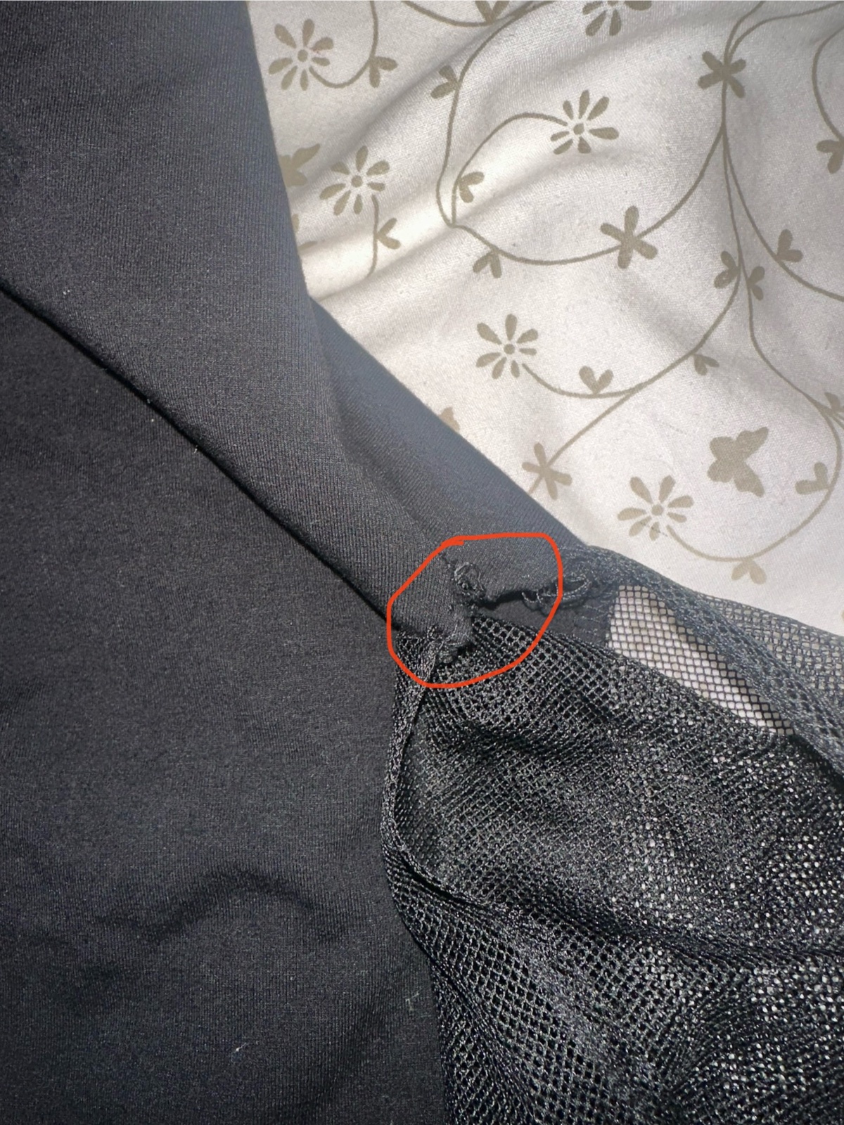 Top je jemne natrhnutý v oblasti pod pazuchami (viď foto), čo však pri nosení vôbec nevidno a nemá to vplyv na vzhľad ani nosenie.