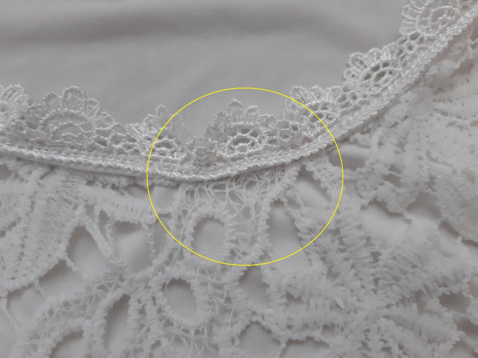 Elegantný dámsky top v dobrom nosenom stave (bez dierok a fliačikov; čipka ja na viacerých miestach viditeľne poškodená (nitky sú vyťahané, miestami aj pretrhnuté - detail viď foto č.2 - 3)). Top má jednoduchý strih; je elastický, takže sa pekne prispôsobí postave. Zadná strana je transparentná. Značka: Zanzea (odstrihnutý vnútorný štítok); veľkosť: XL (podľa štítka XXL, ale veľkostne sedí na L/XL - treba si poriadne preštudovať rozmery).