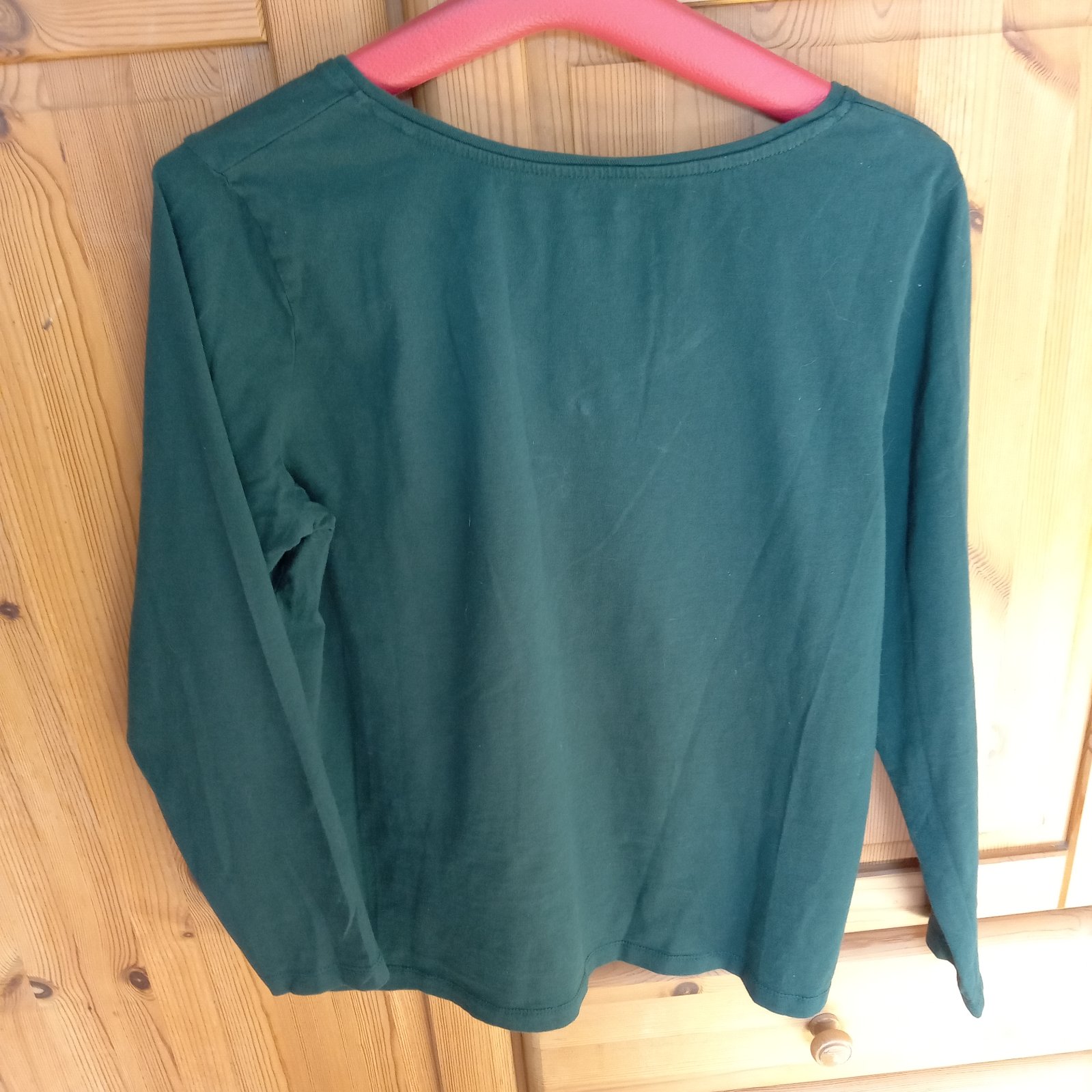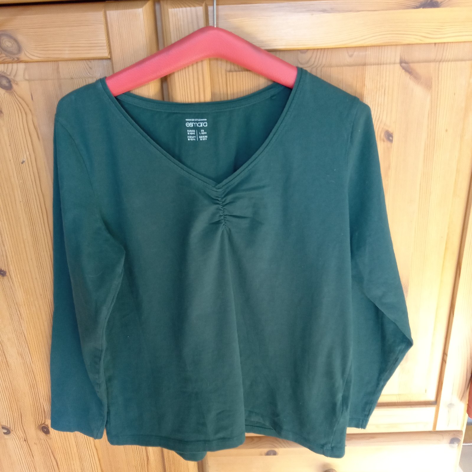 Predám tmavozelené tričko materiál 100percentná bavlna, značka Esmara, bezchybný nosený stav, širka v podpazuší 52 cm, zadná dĺžka 56cm.