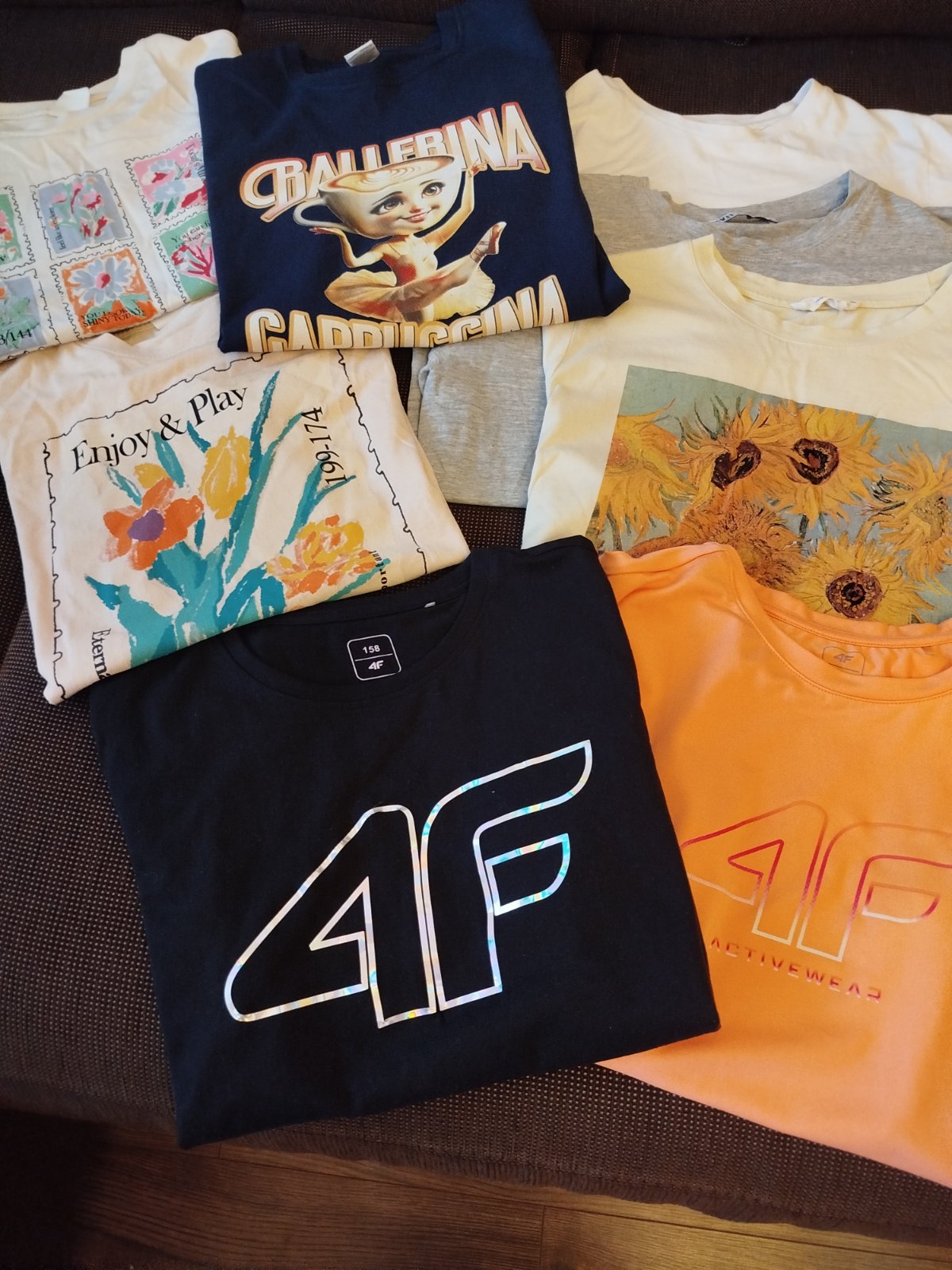 Dva sú z nich športové funkčné značky 4F. Pôvodná cena tričiek do 90 eur.Ponúkam za symbolickú cenu 12+poštovné.Cena 1ks za 1,50.