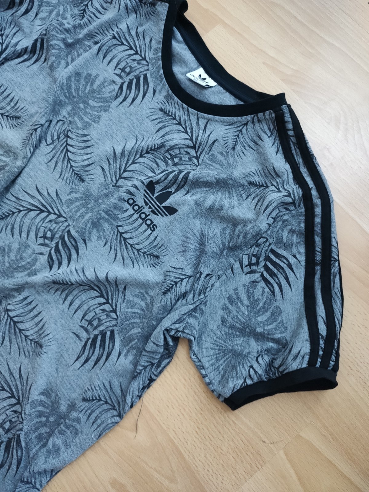 Tmavo šedé tričko, hrubší bavlnený materiál,no veľmi príjemný. Párkrát oblečené, v top stave. Sedí na L.