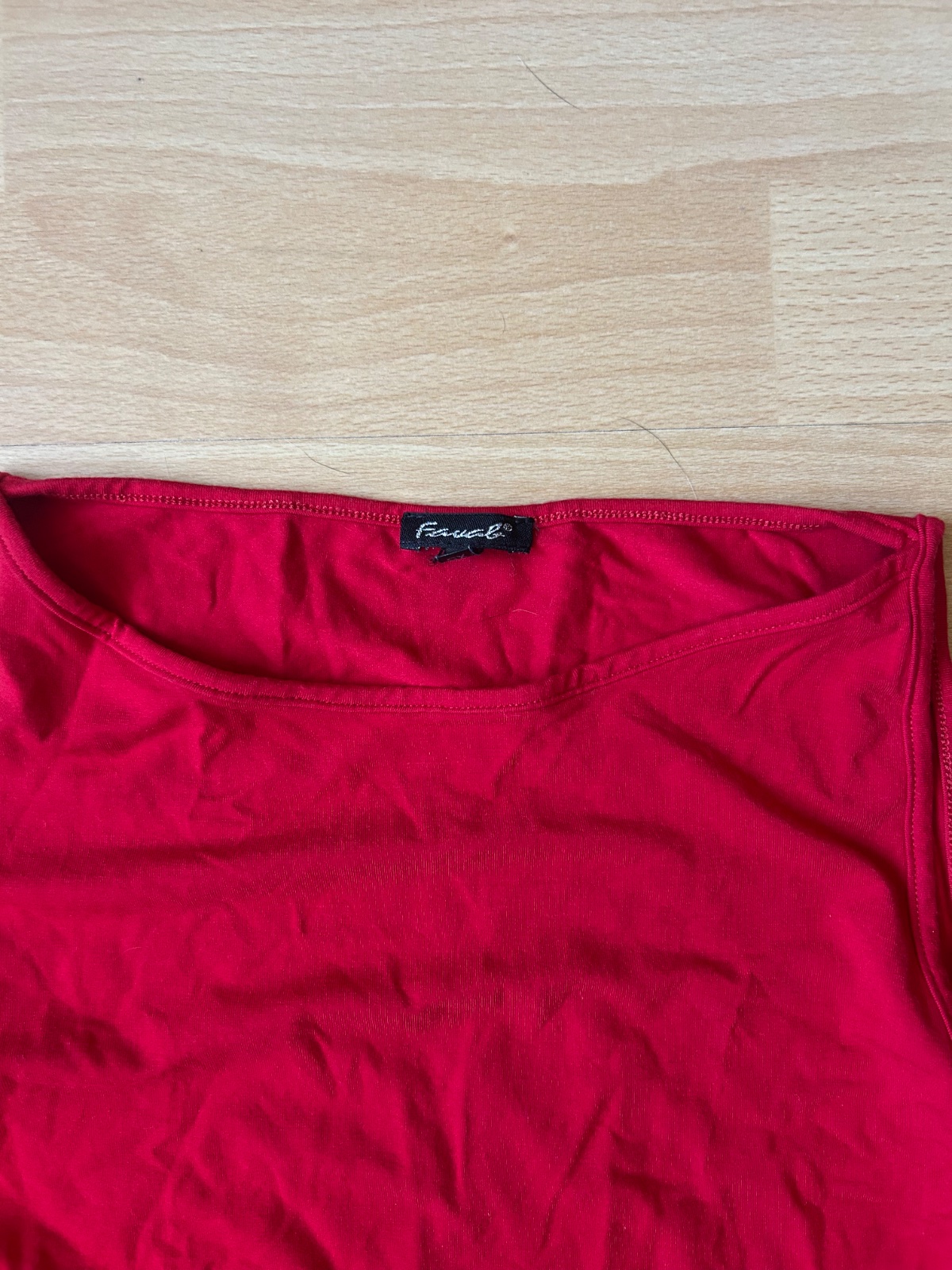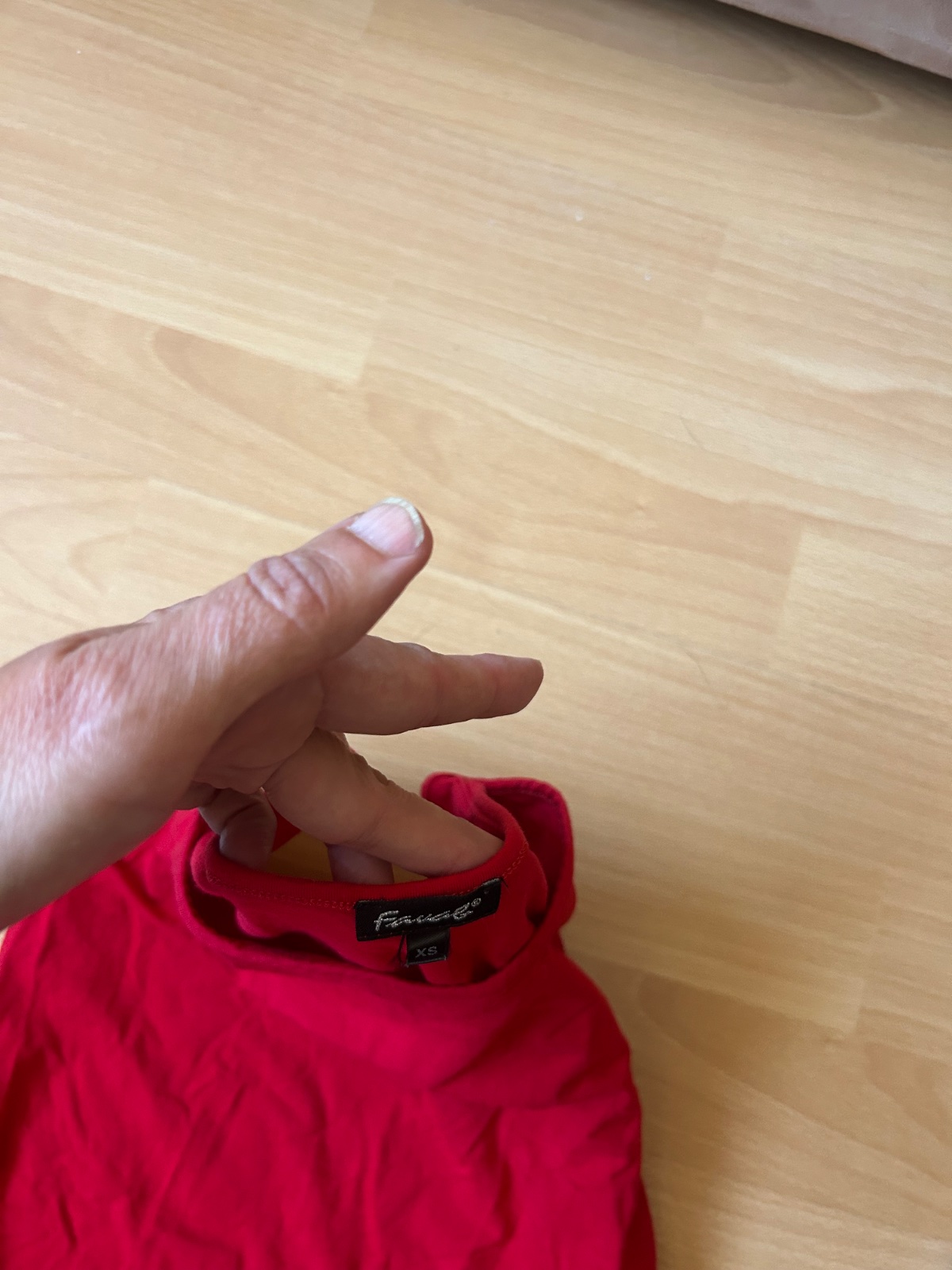 dámsky červený elastický top, príjemný kvalitný materiál, zloženie: 95 % bavlna, 5 % elastan, stav: výborný, málo nosený, značka: H&M, uvádzaná veľkosť na štítku S, je menší, zodpovedá veľkosti XS...