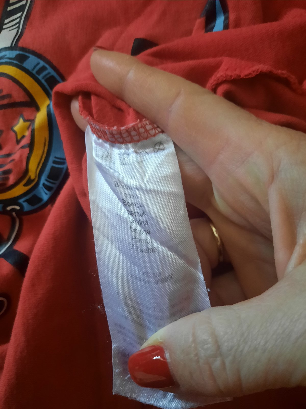Párkrát nosené tričko, krasna cervena farba, nevyprate, ako nove, veľkosť pisana7-8,128..podľa mňa aj 122..cena 1euro