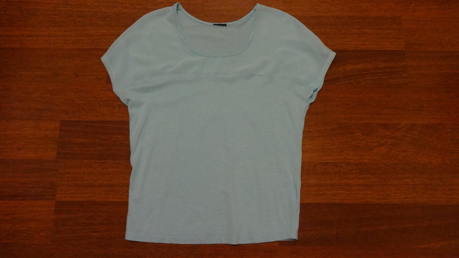 tričko bledomodrej farby, ako nové, rozmery: dl.-58 cm, š.-2x 44 cm