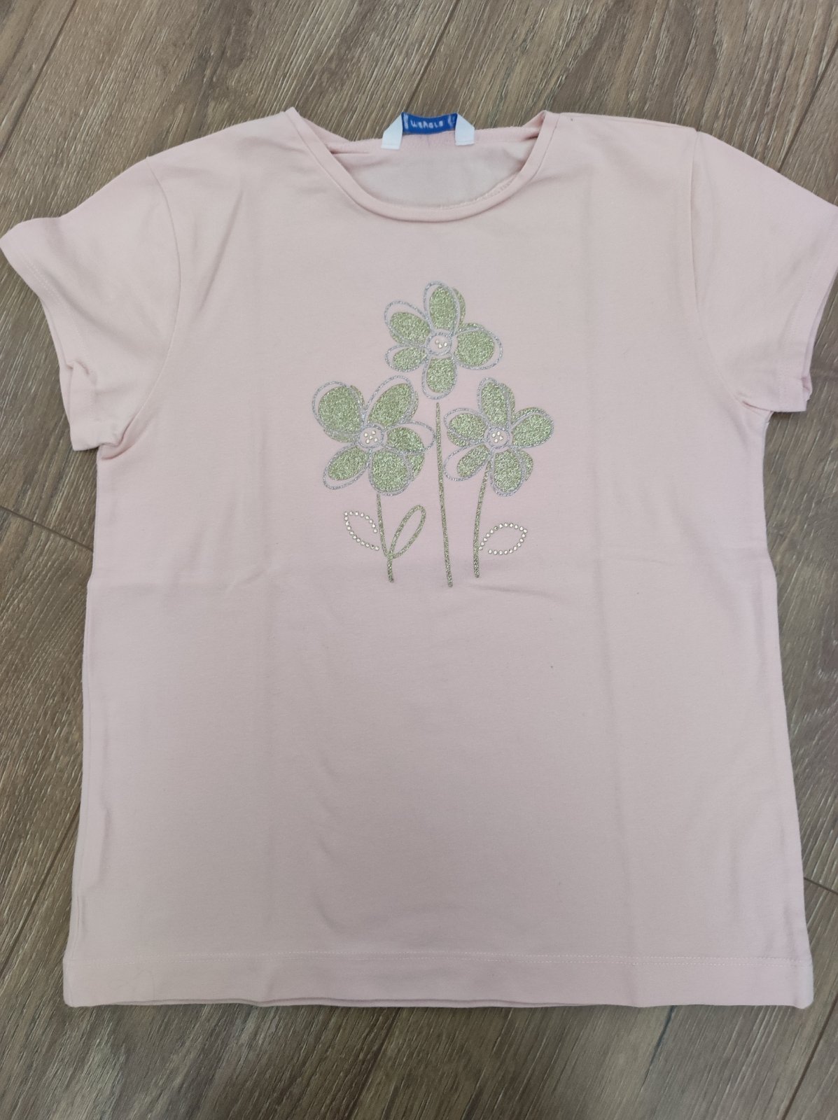 Krásne tričko s flitrovým srdiečkom, flitre sa nedajú pretáčať hore/dole, vel. je uvedená 140 ale je určite menšie preto uvádzam vel. 128, je vo veľmi dobrom nosenom stave, poškodenia som nenašla, ...