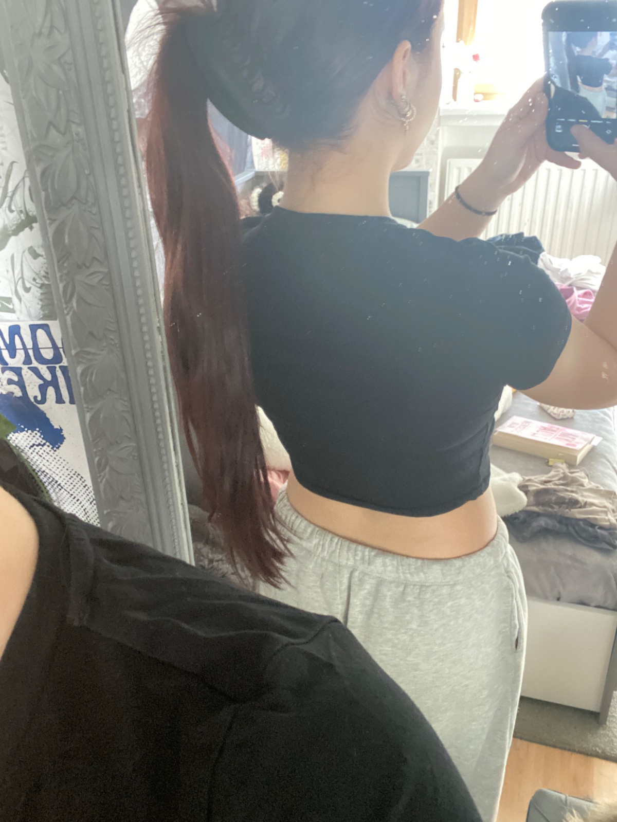 Super stav, par krat vzaté čierne bavlnené tričko.