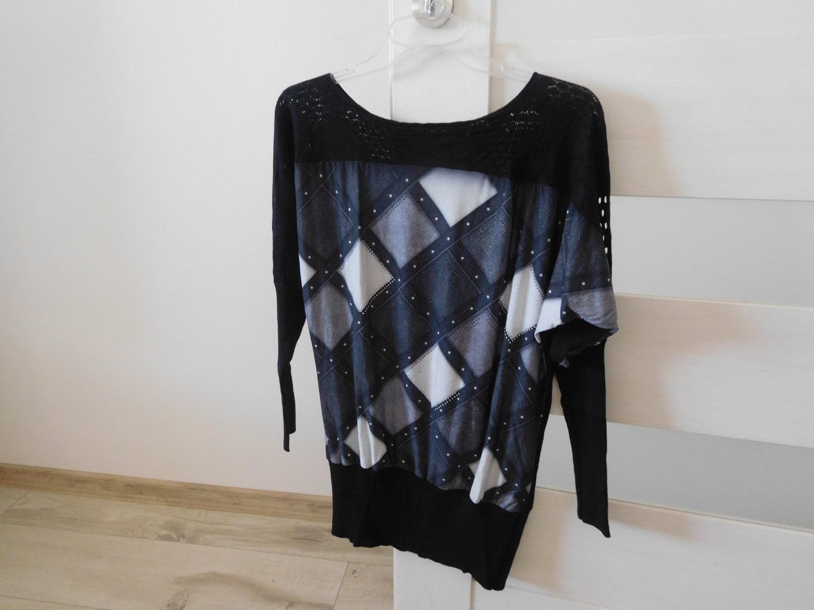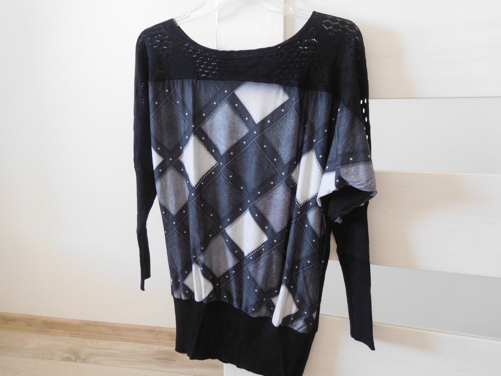 Top stav, čierno-čierne. Dĺžka 56, šírka v podpazuší 45x2, rukáv od krku 70 cm.