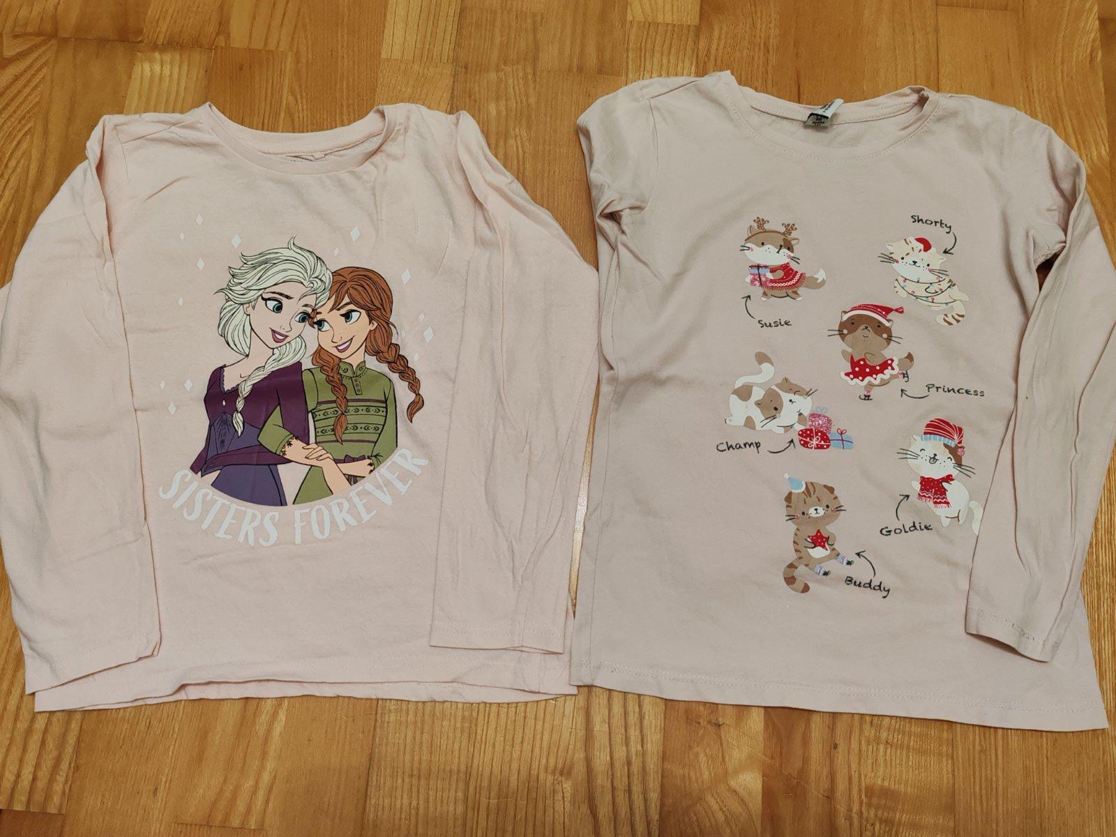 Tričká s dlhým rukávom, Frozen veľkosť 122 zn. Sinsay a mačky veľkosť 128 zn. Dopodopo, cena spolu.