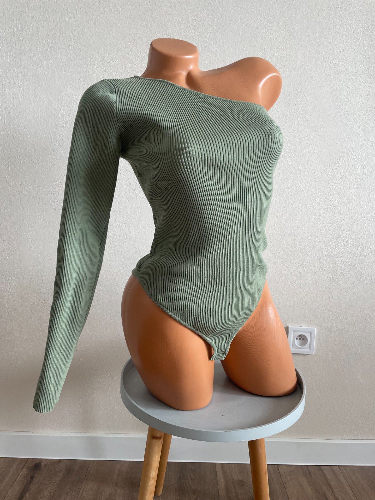 Zelený rebrovaný body top na jedno rameno, veľkosť M, značka Bershka. Top stav.