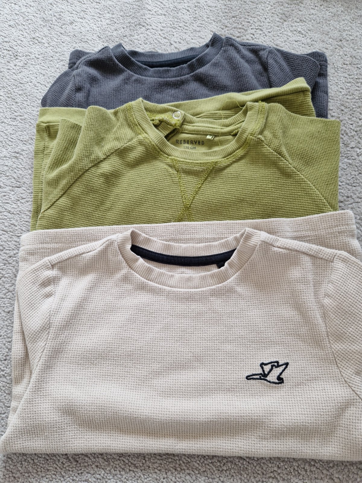 Predám tričká 3ks z nich značka f&f, trosku hrubšie, super materiál, bledo zelene 1ks je reserved zapínanie pri krku. Všetky sú nosené, v dobrom stave bez poškodení. Velkostne sedia rak 104/110. Daju sa kúpiť aj jednotlivo. Jednotlivo kus 3.5e