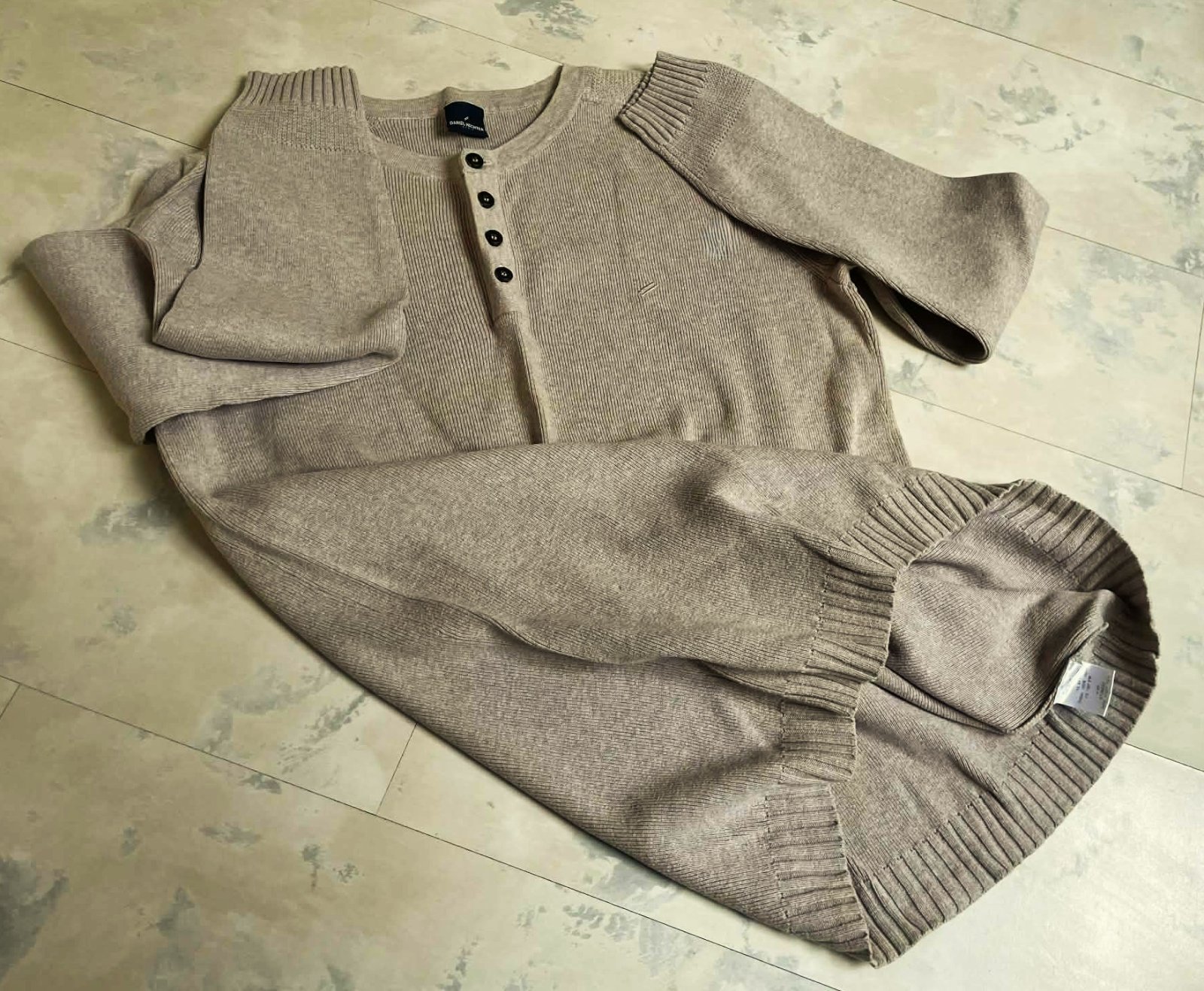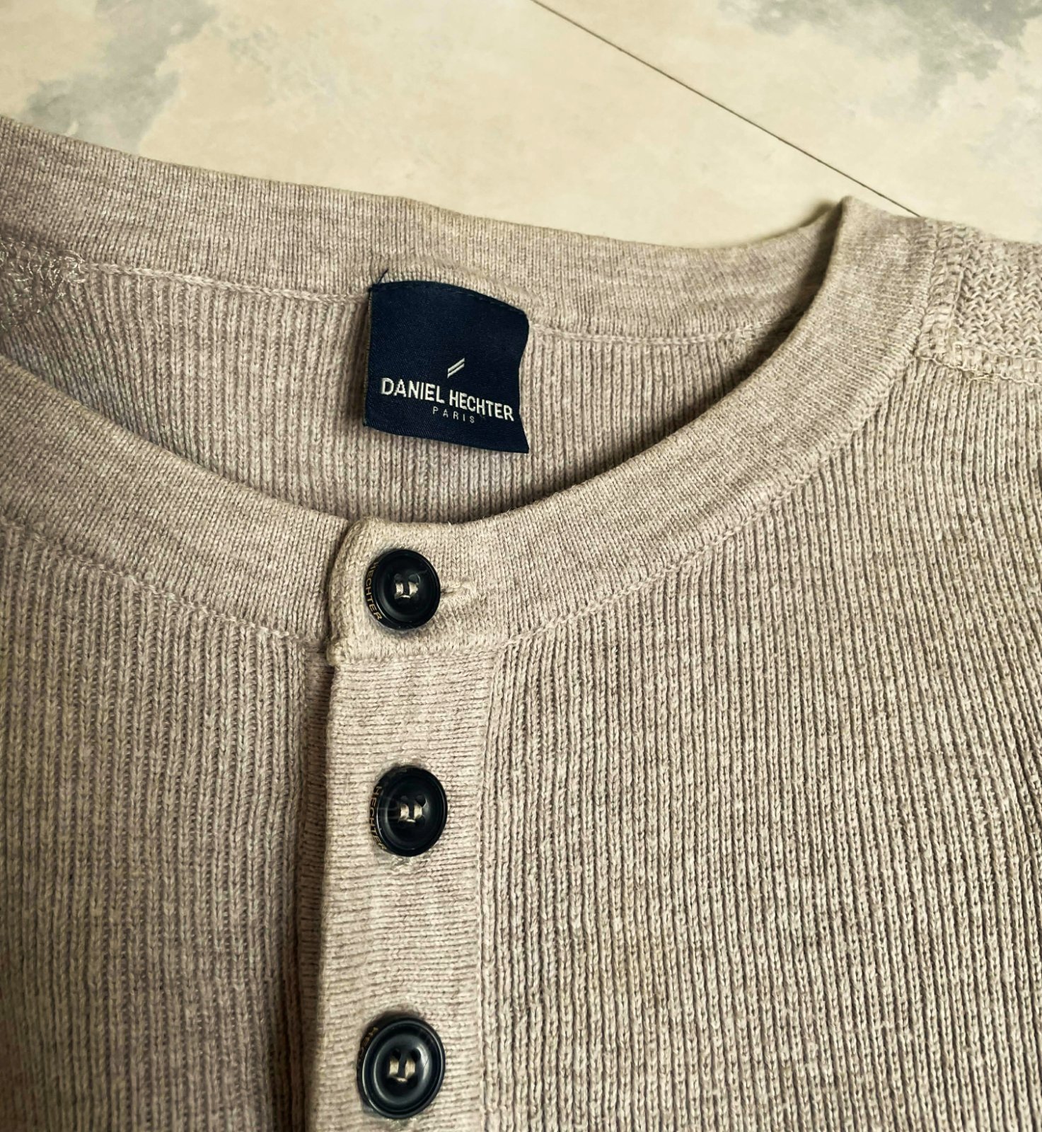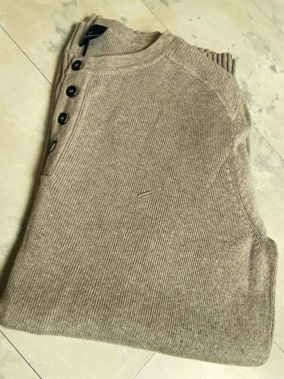 kvalitné hrubšie pevnejšie tričko,niečo medzi ľahkým pulóvrom a trikom, jemne striekané,krásne vypracované,značka Daniel Hechter,zaujímavo riešené s peknými detailami,