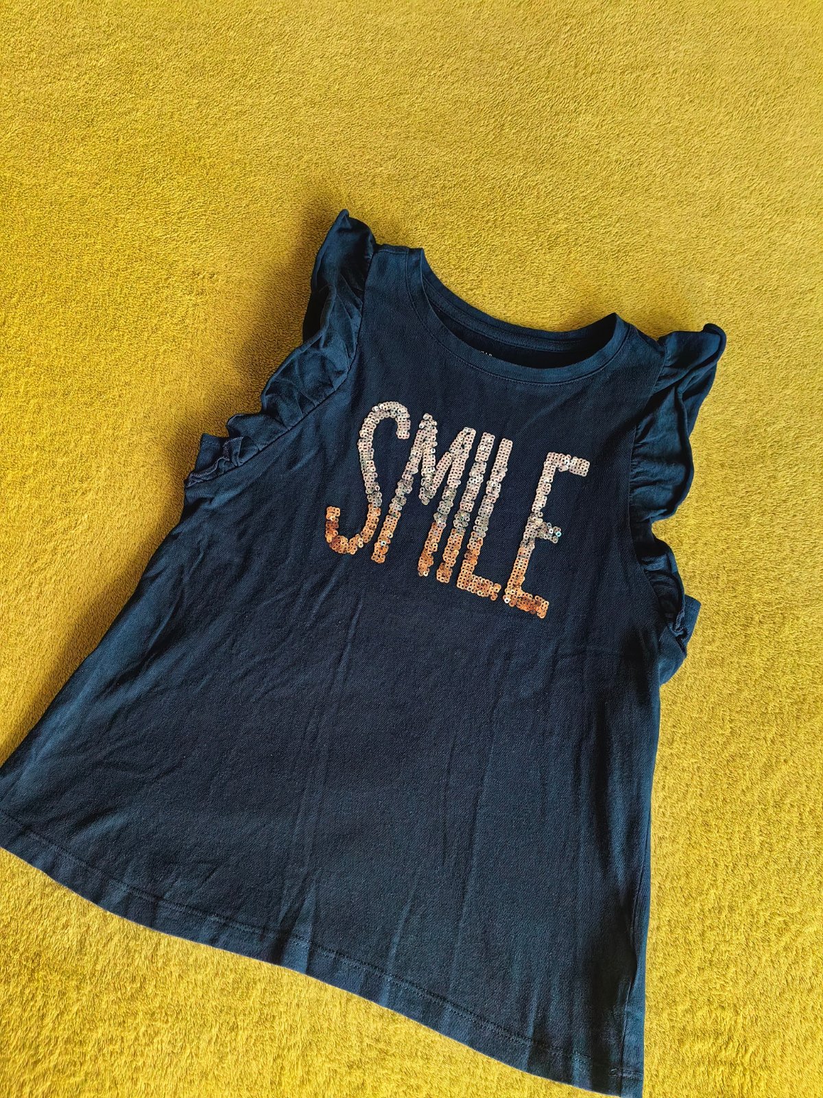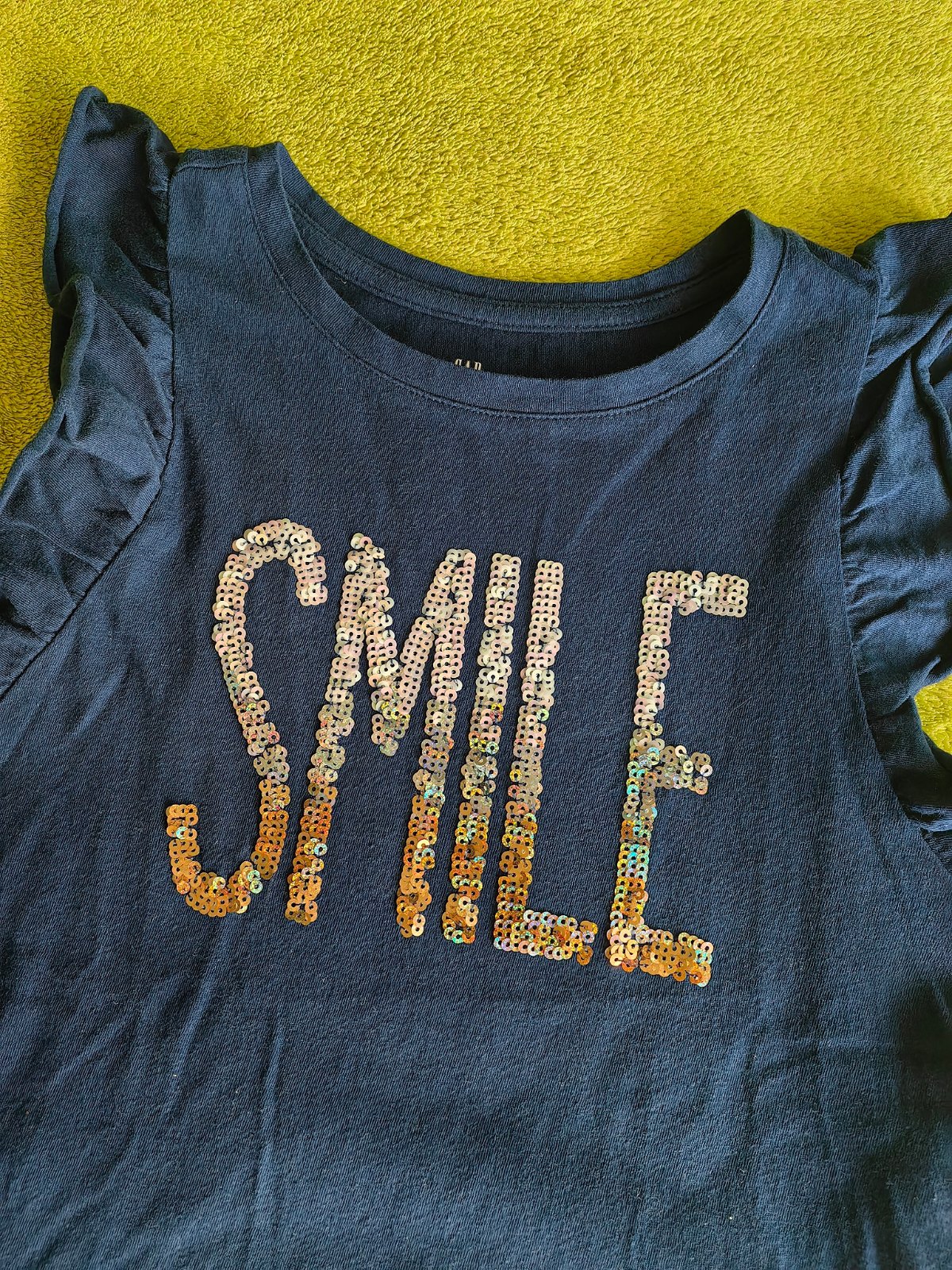 Raz oblečené tričko bez rukávov značky Gap, v top stave. S krásnym flitrovaným nápisom Smile. Zloženie 100% bavlna. Veľmi príjemné na horúce letné dni. Osobný odber v Bratislave, alebo poštou, poštovné nie je zahrnuté v cene.
