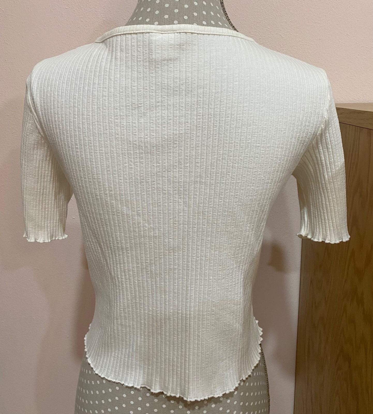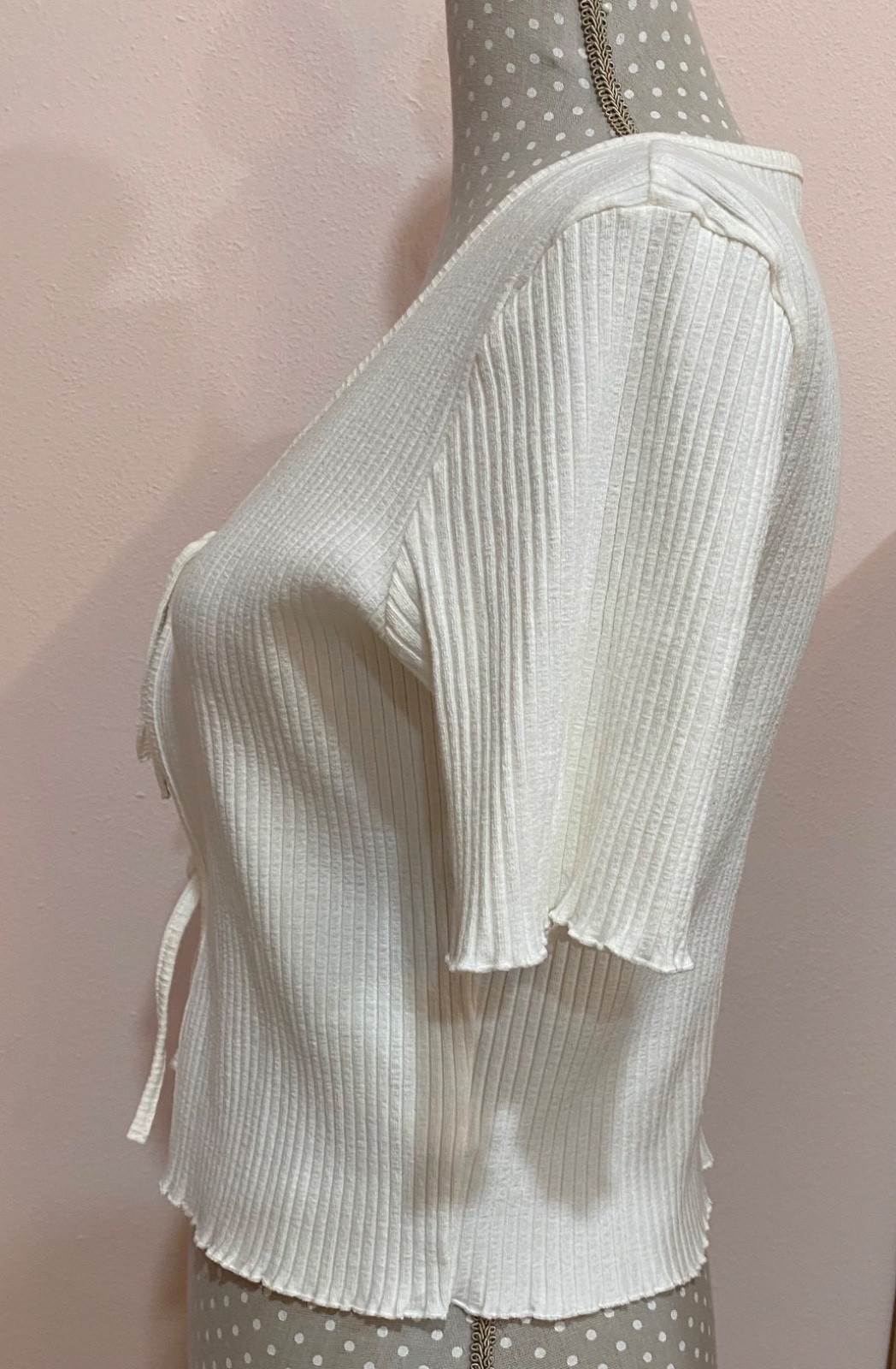 Letné tričkové bolerko smotanovej farby- na šaty etc. Stav 10/10, bavlna, sedí na 158/164, uvedená až 170