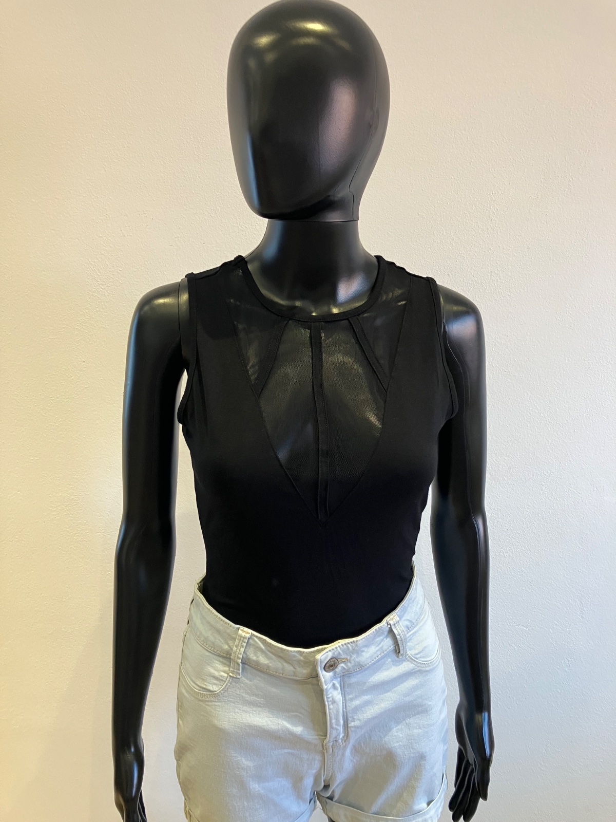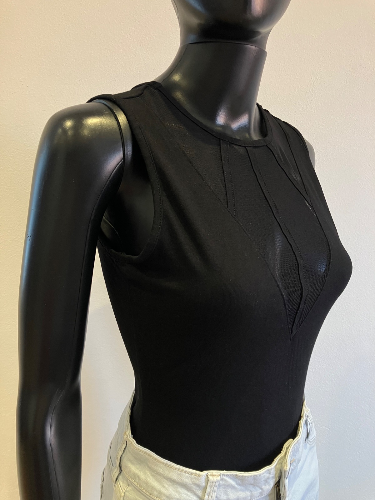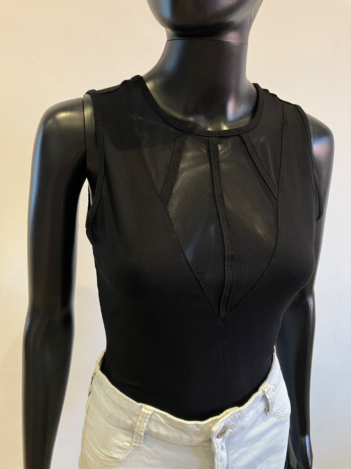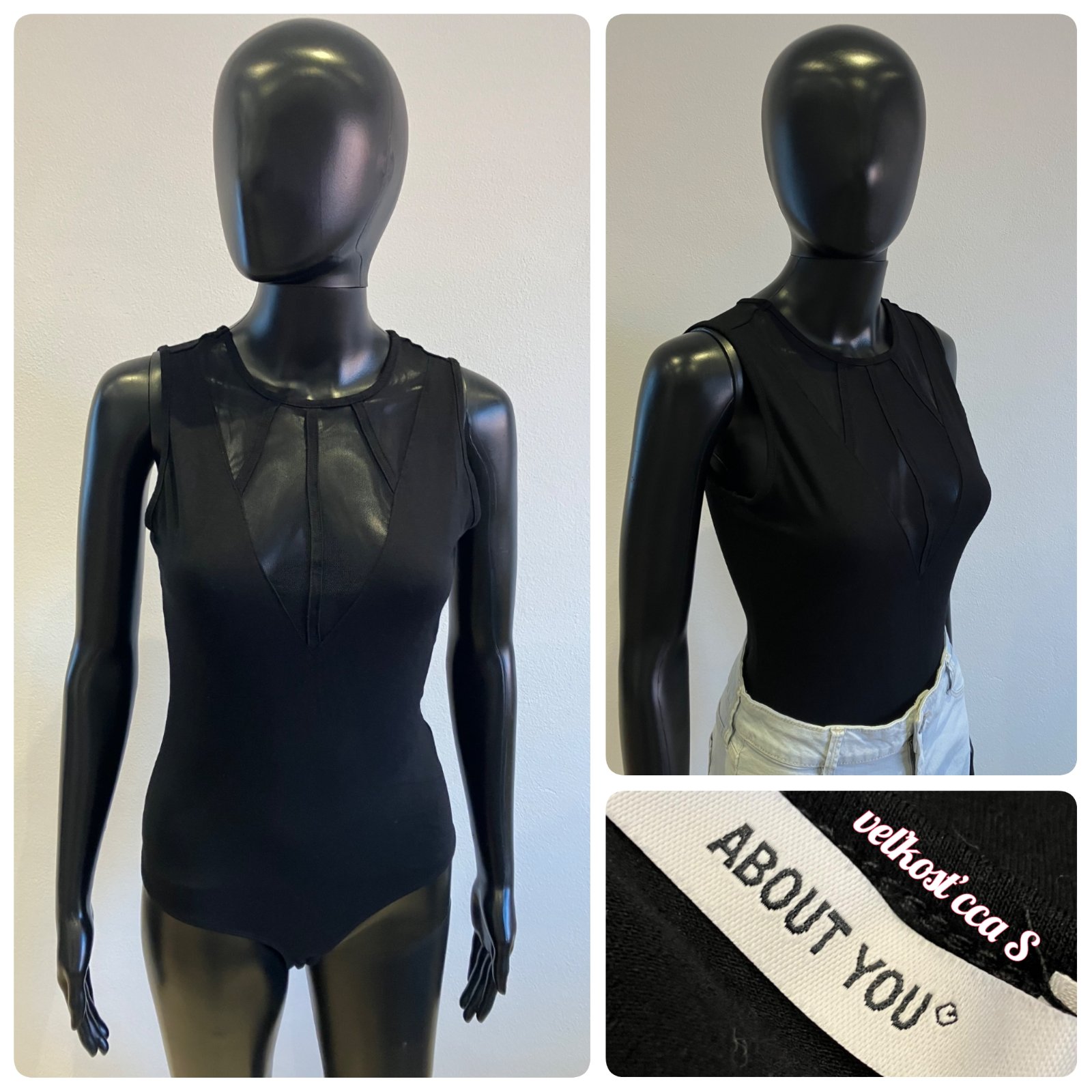 Dámske body bez rukávov s tylom, elastické, zapínanie na cvoky, veľkosť cca S.