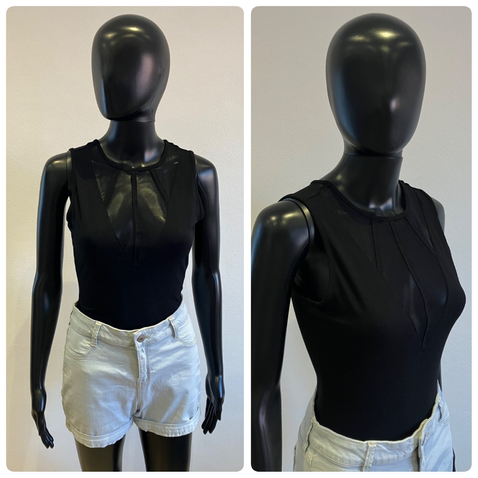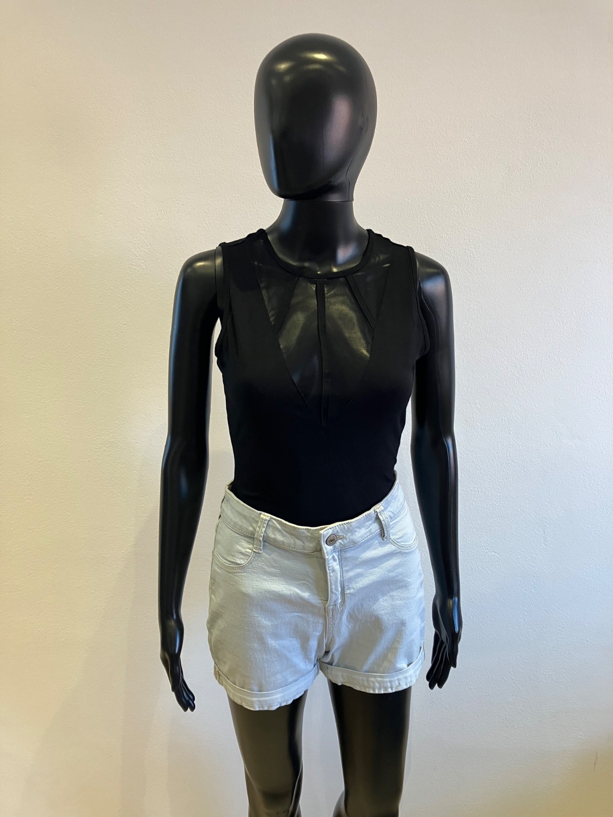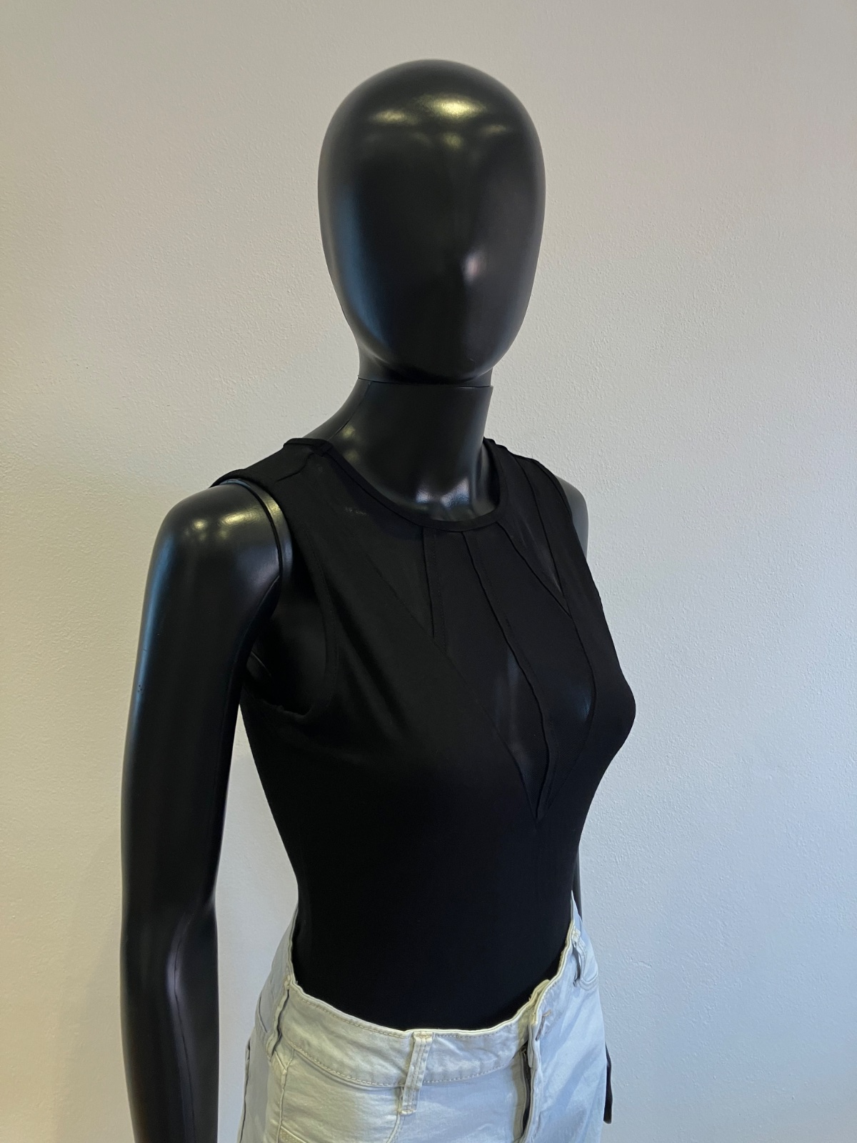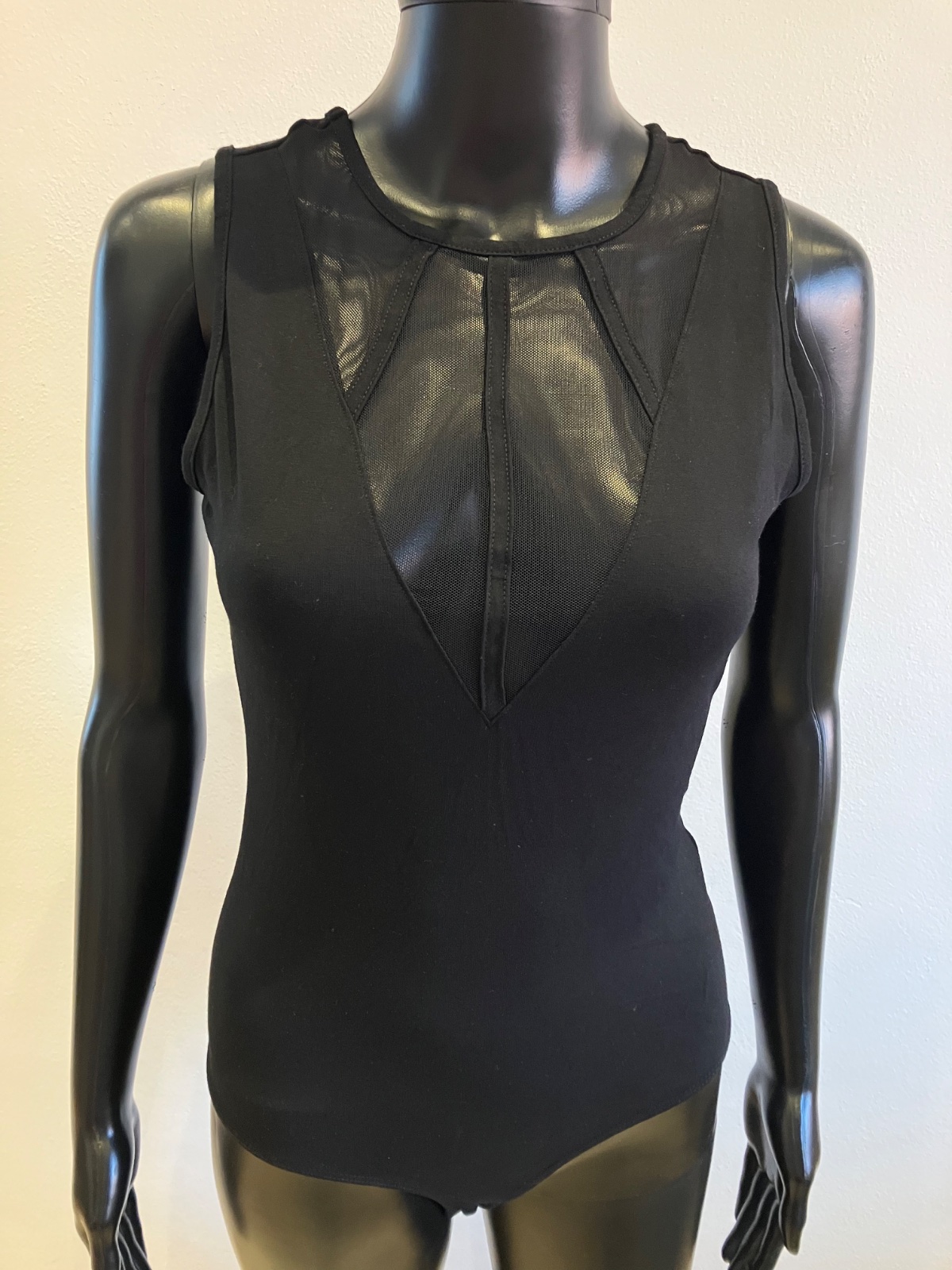 Dámske body bez rukávov s tylom, elastické, zapínanie na cvoky, veľkosť cca S.