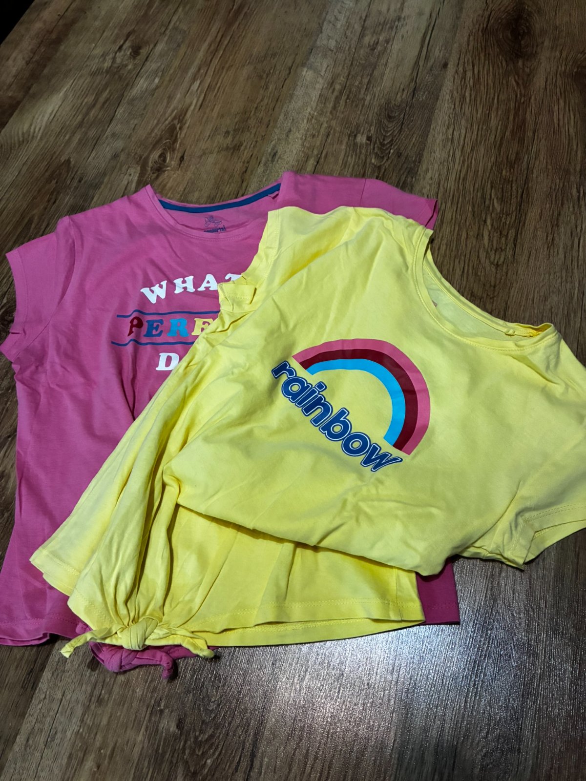 Ponúkam troje dievčenské tričká s krátkym rukávom, ružové a žlté, zacka pepers + big star velkosť 158/164, cena spolu 8€