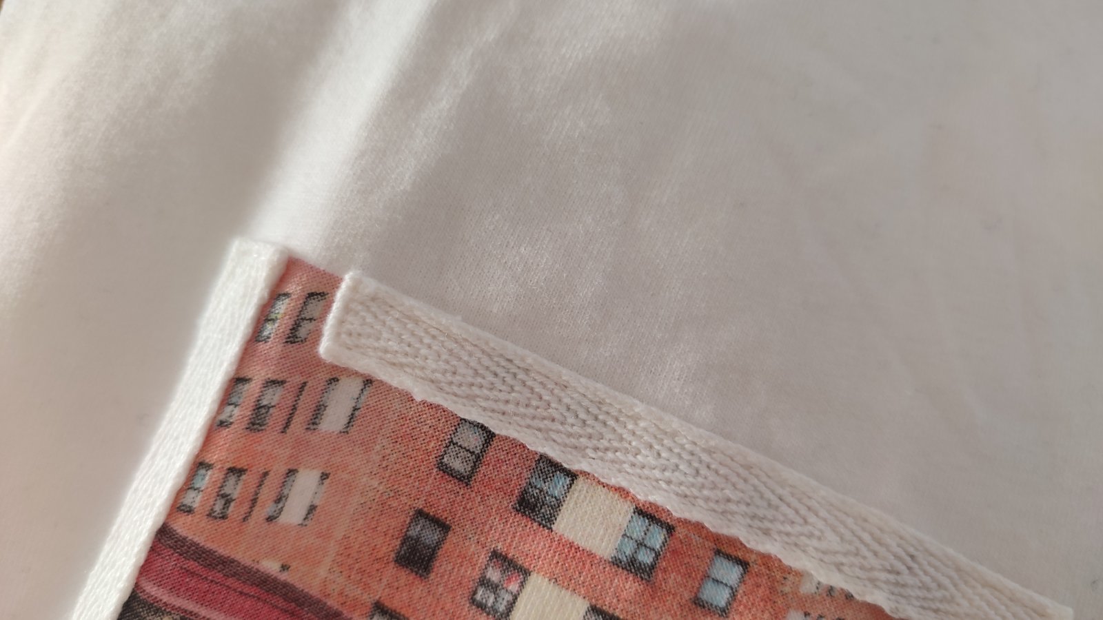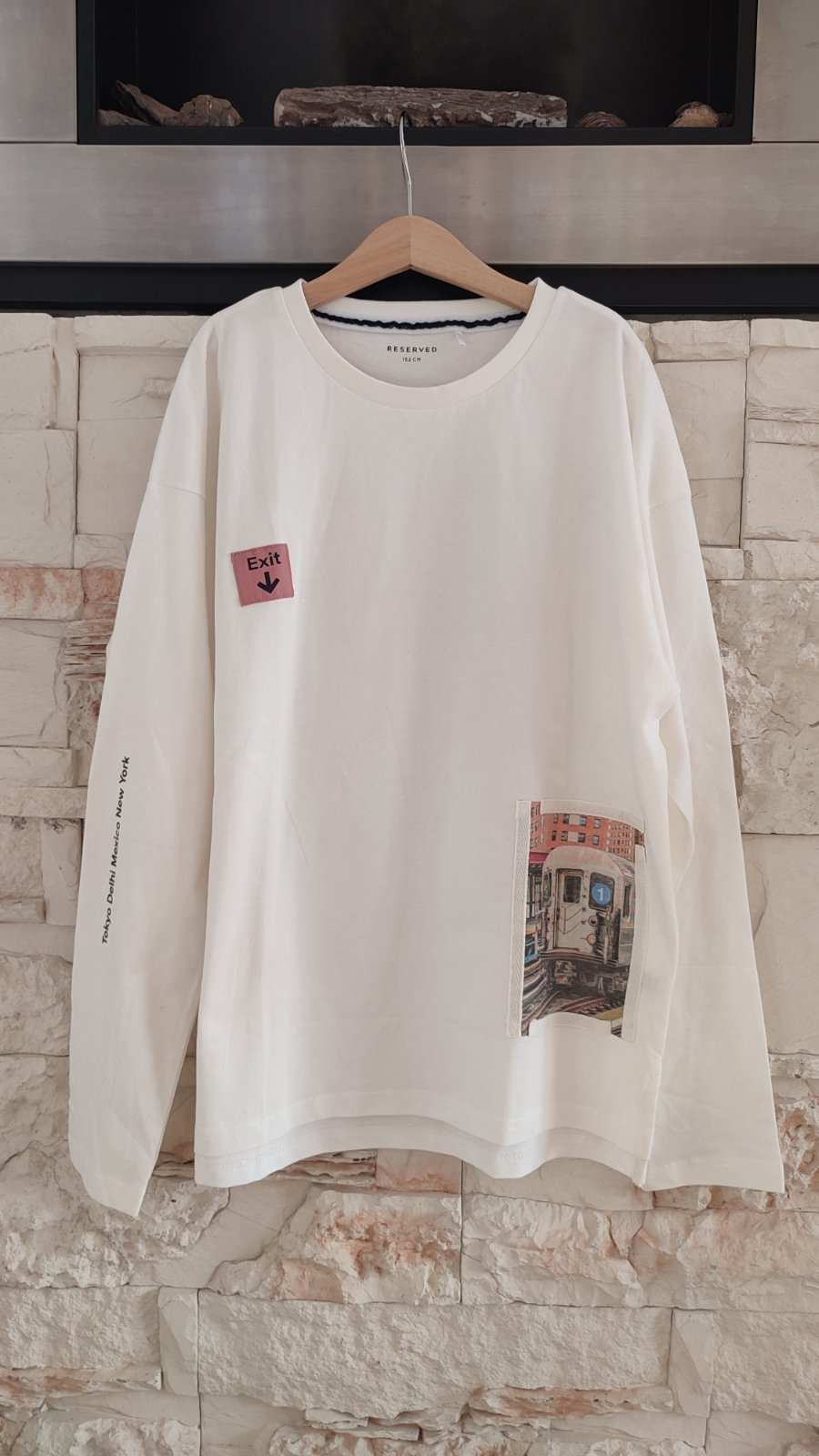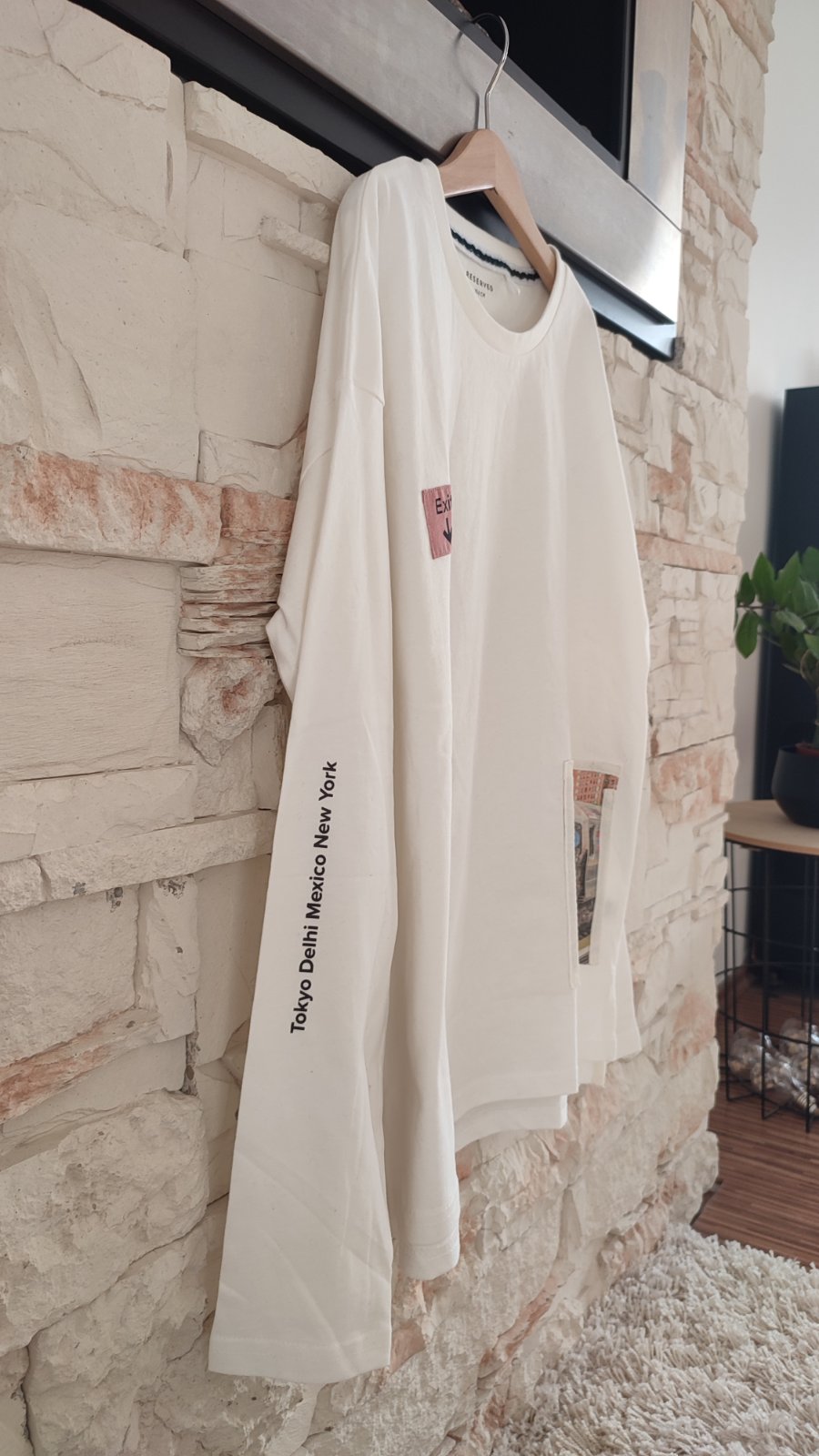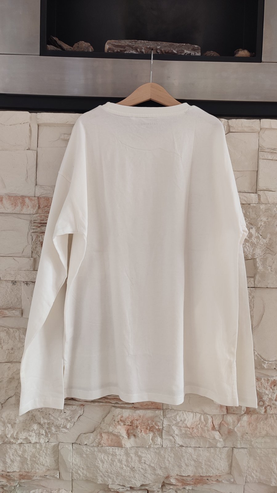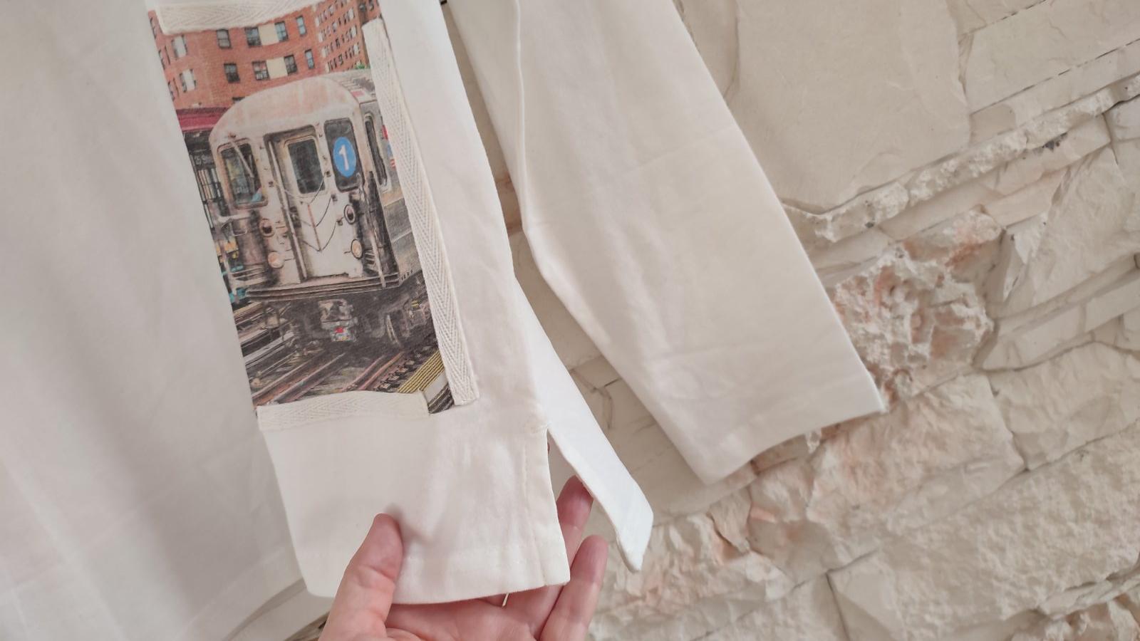 Ponúkam smotanovo-biele tričko s potlačou a nasivkami. Zadná časť je predĺžená, veľmi príjemný akoby zamatkovy povrch, rychlo sme vyrástli 😕.